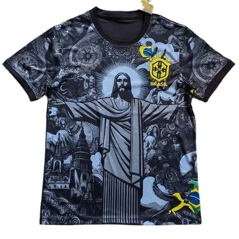 Show your support for Brazil with this eye-catching CBF soccer jersey featuring bold yellow bird graphics and classic green trim.
