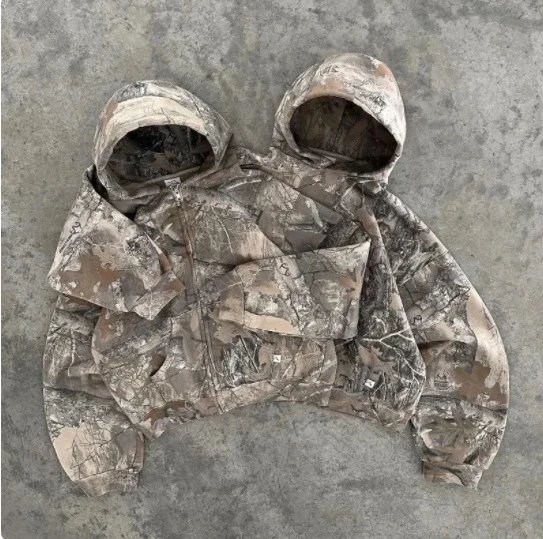 Stay concealed and comfortable with this durable camouflage hoodie jacket, perfect for hiking, hunting, or casual outdoor wear.