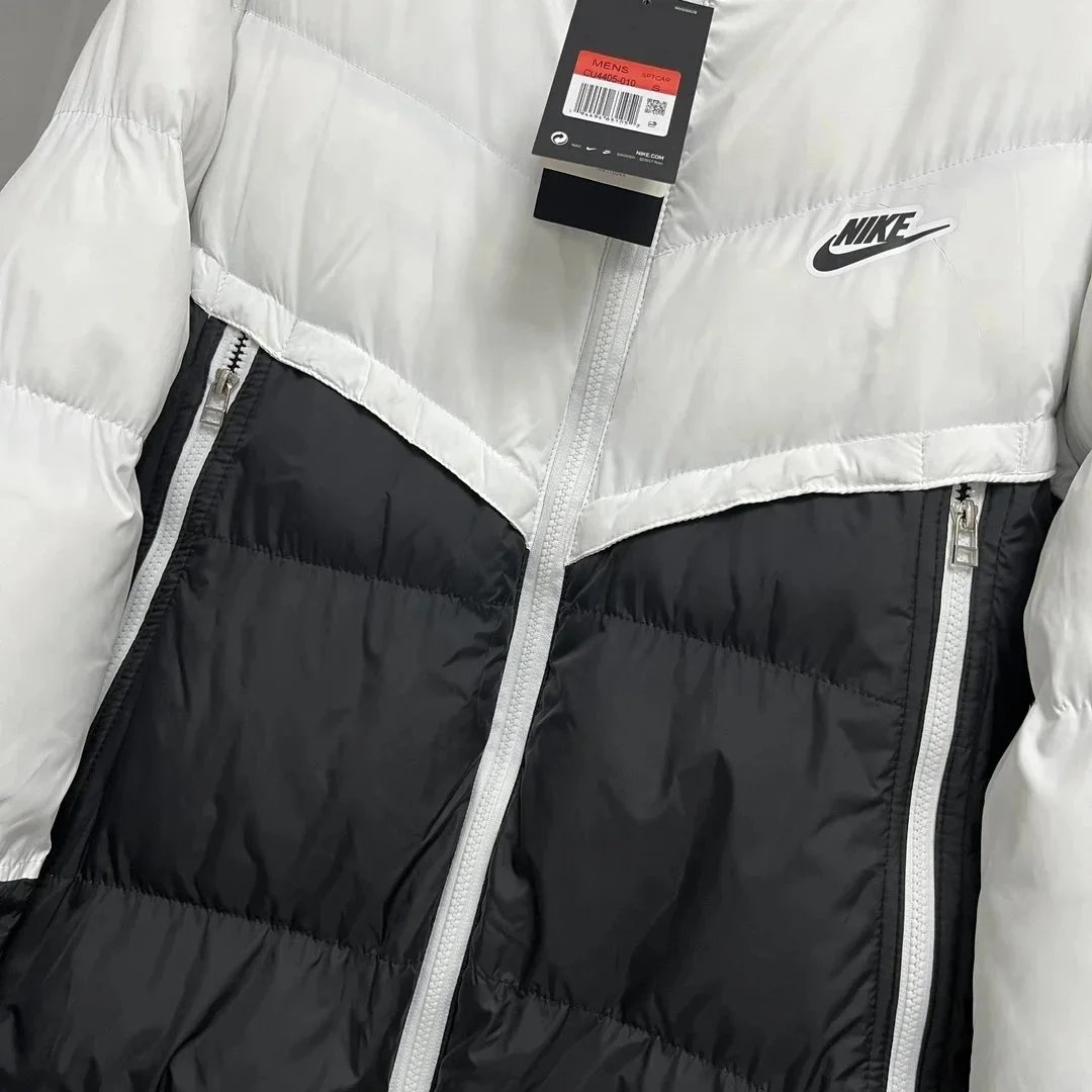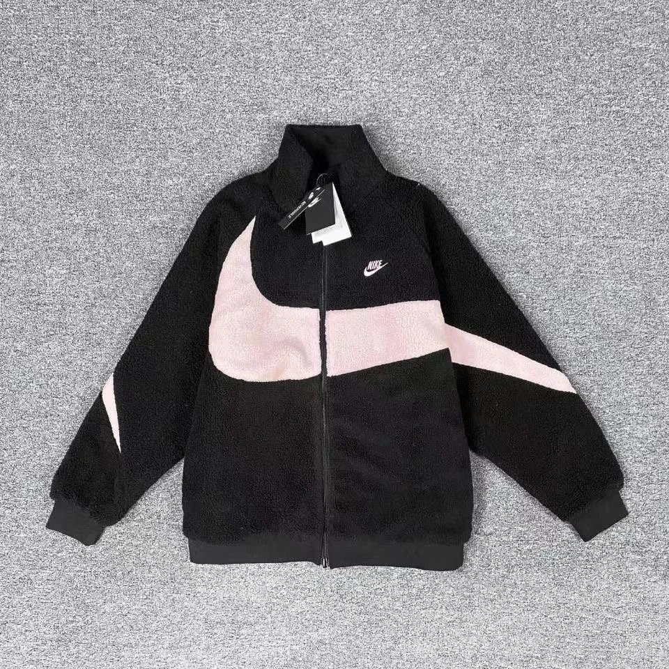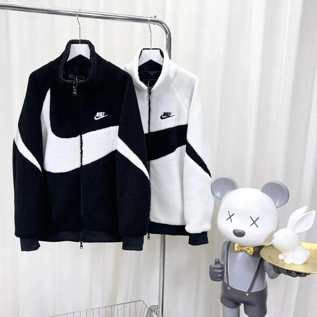Stylish black and white color block fleece jacket featuring a bold contrast design, perfect for staying warm and fashionable during colder seasons.