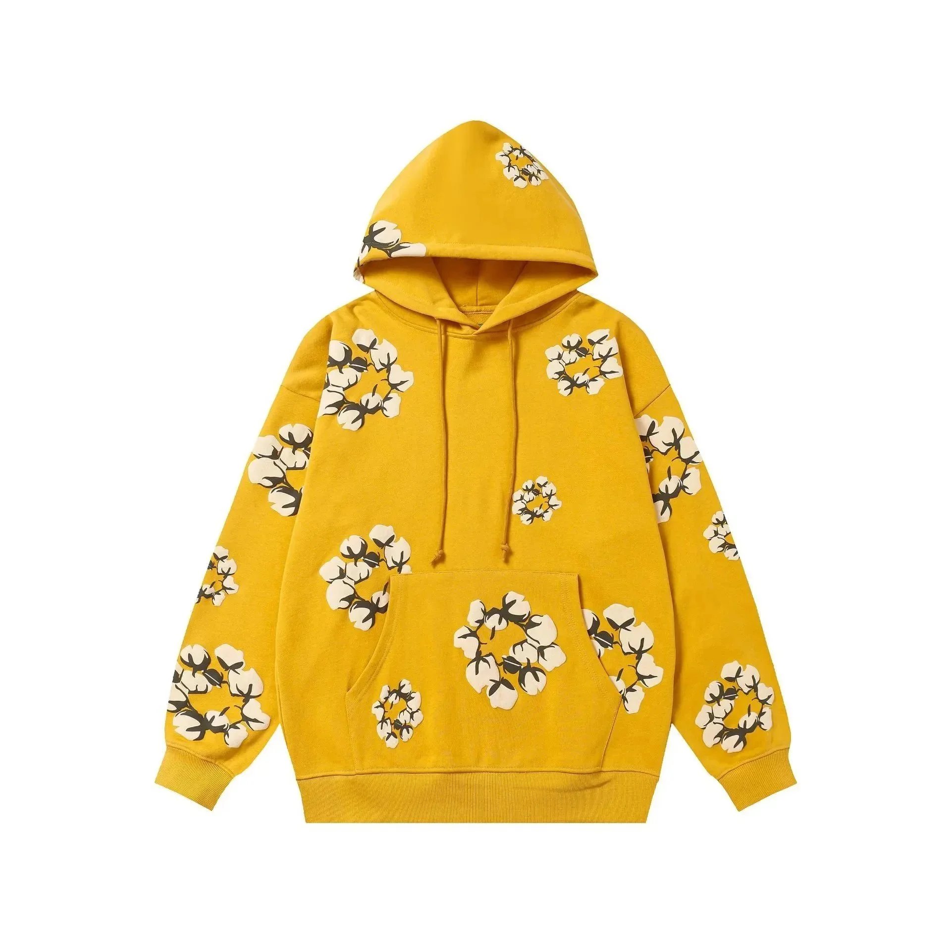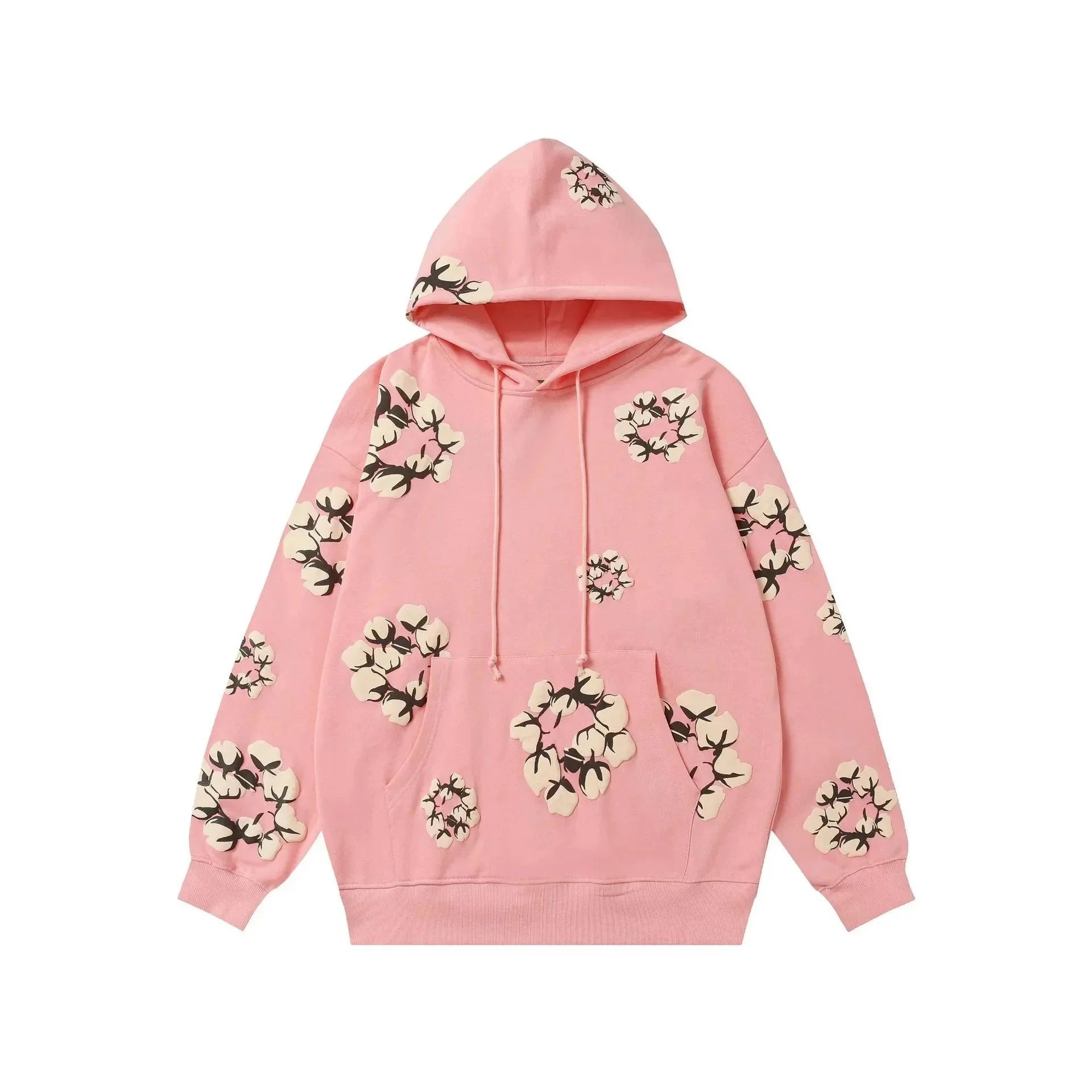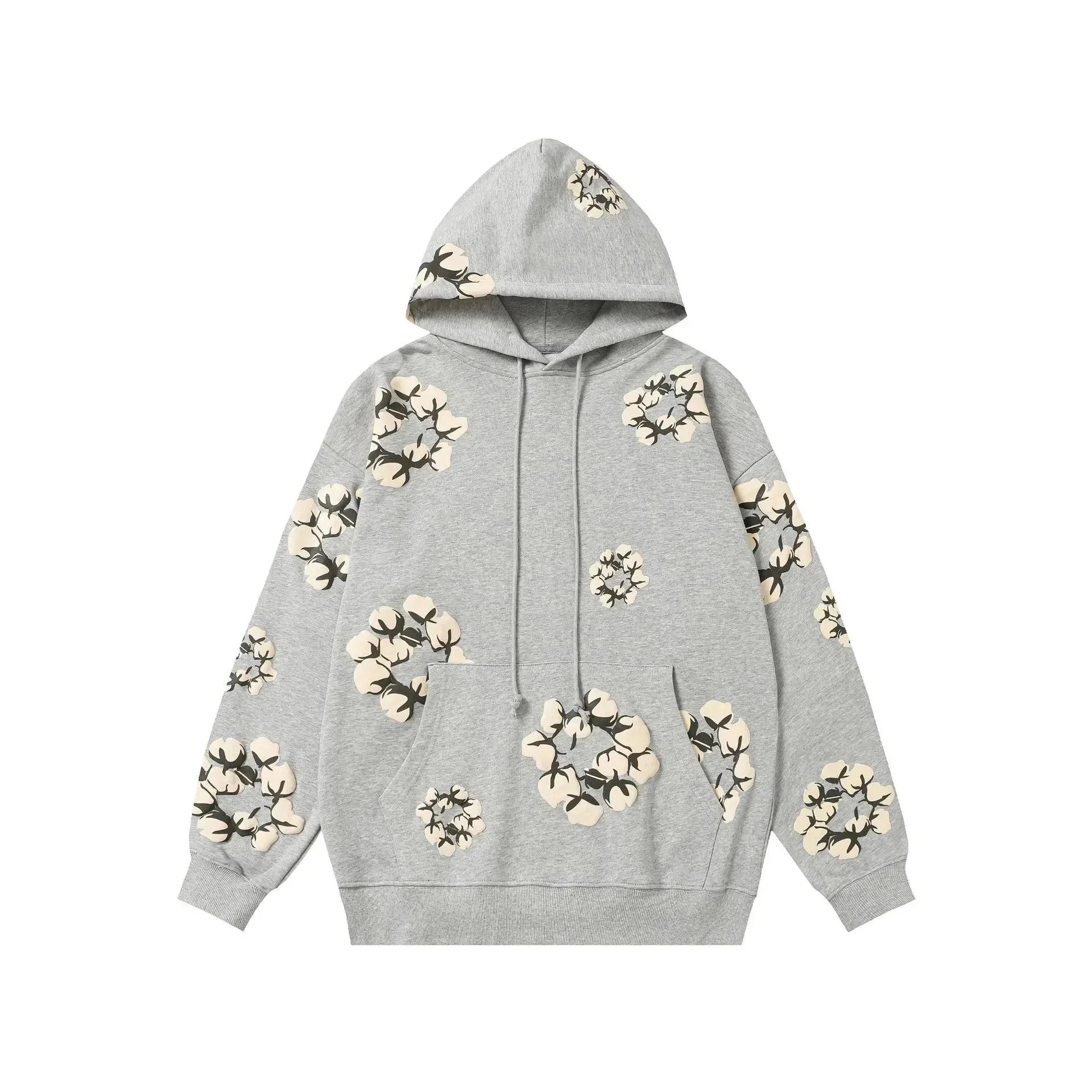 Stay cozy and stylish with this navy blue sweatshirt featuring a bold cotton flower print on the chest and sleeves. Perfect for casual wear with a touch of nature-inspired flair.