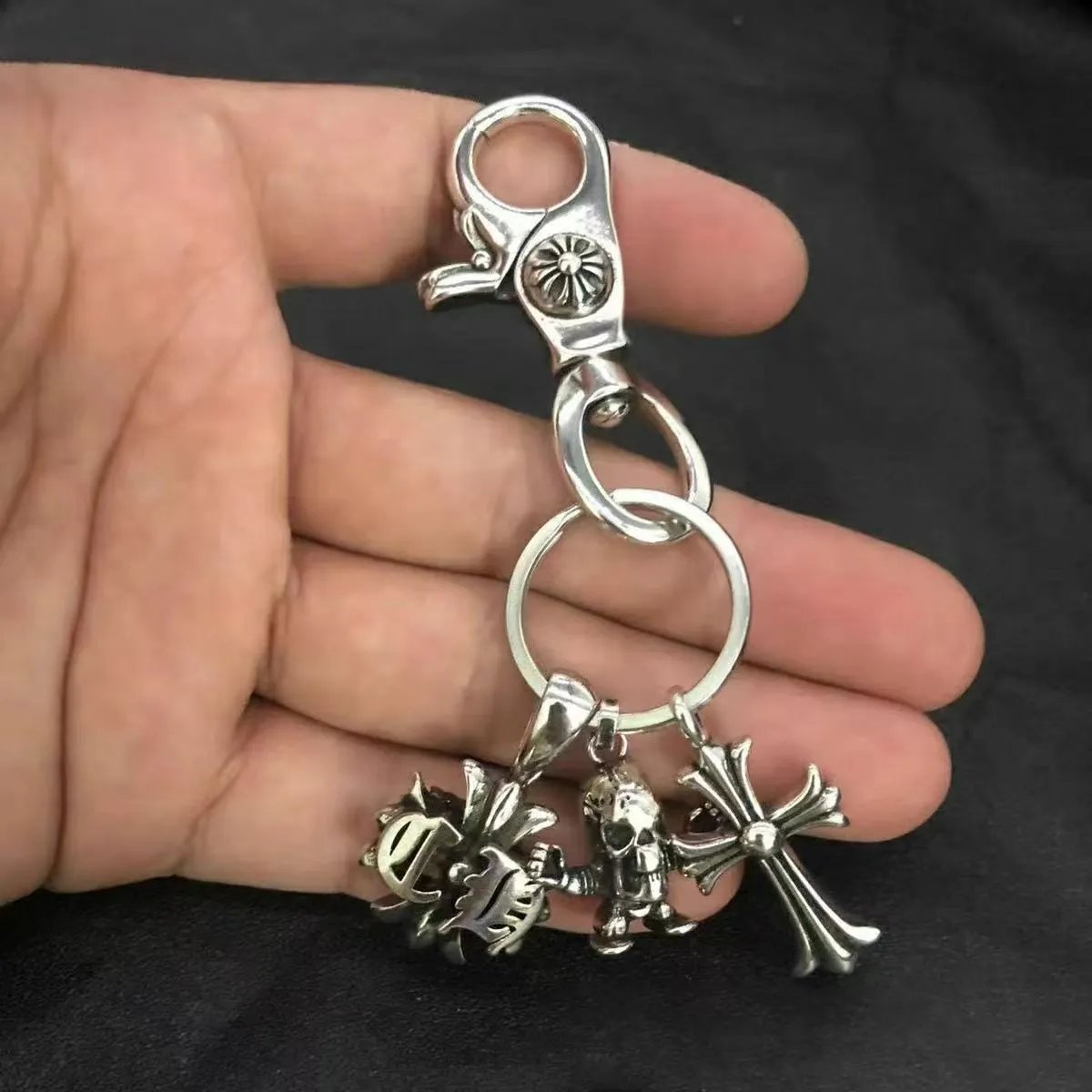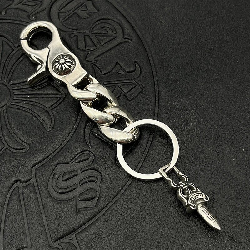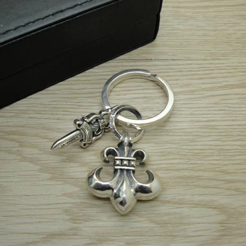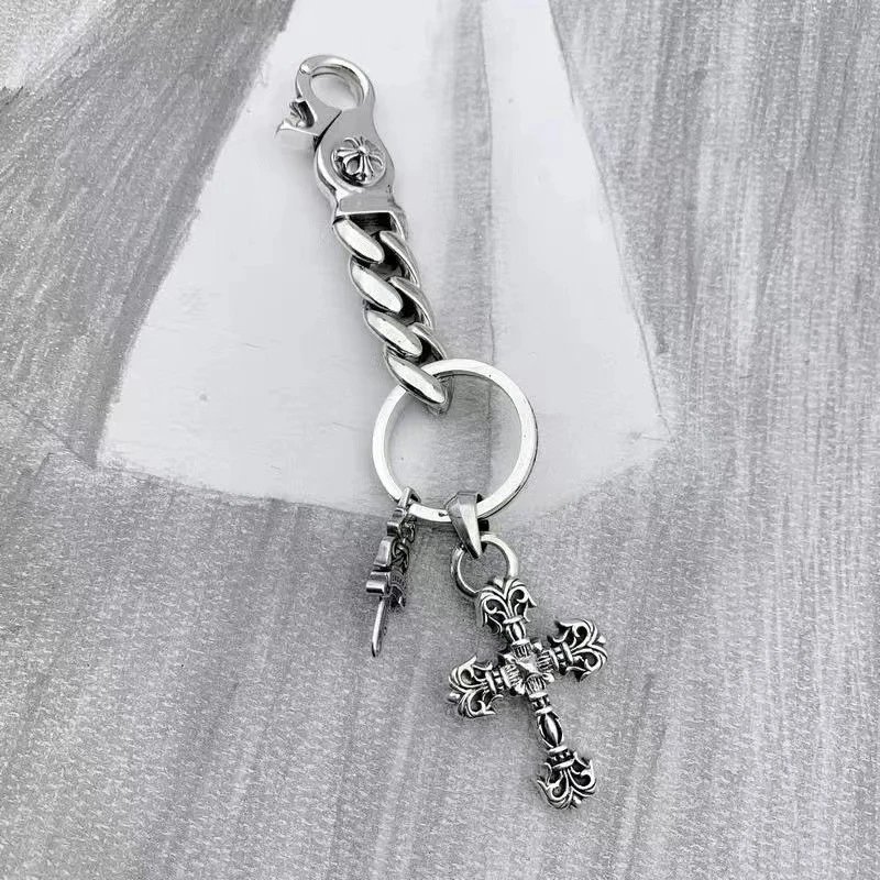 Stylish silver keychain featuring an ornate cross and dagger charm, perfect for adding a bold statement to your keys or bag.