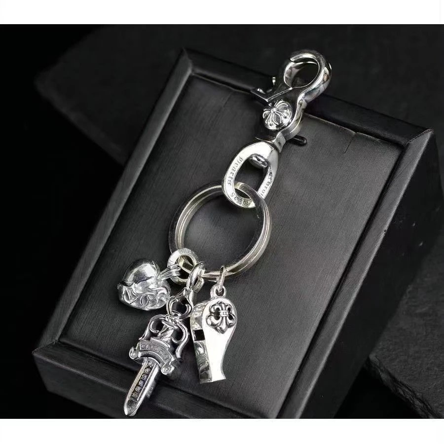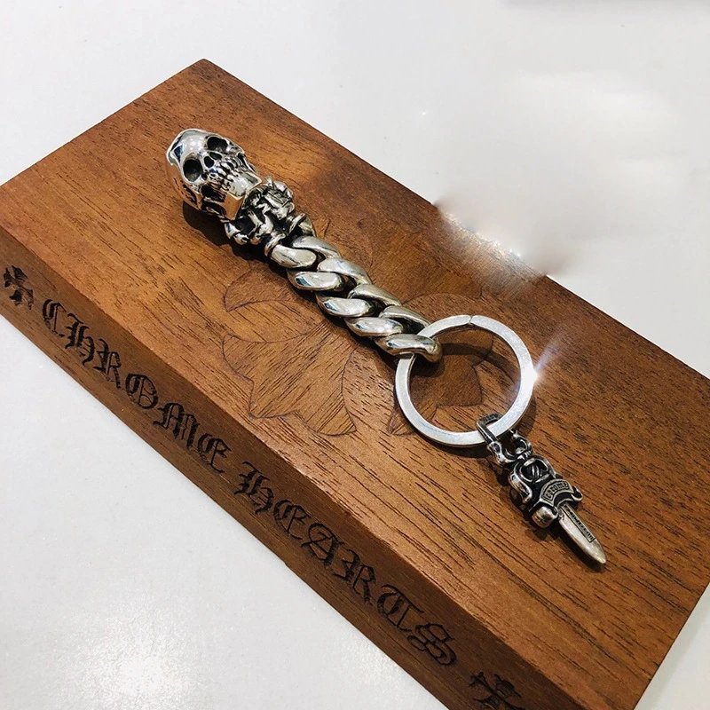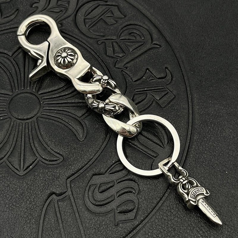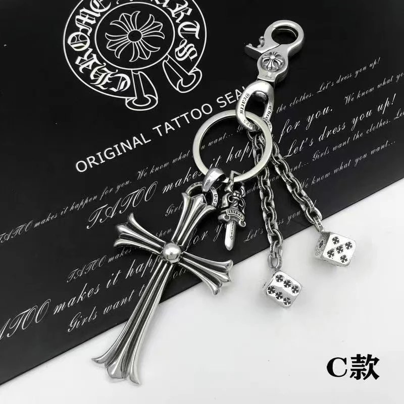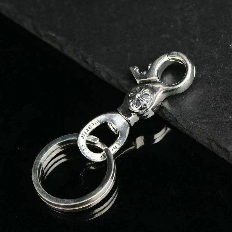 Stylish silver keychain featuring an ornate cross and dagger charm, perfect for adding a bold statement to your keys or bag.