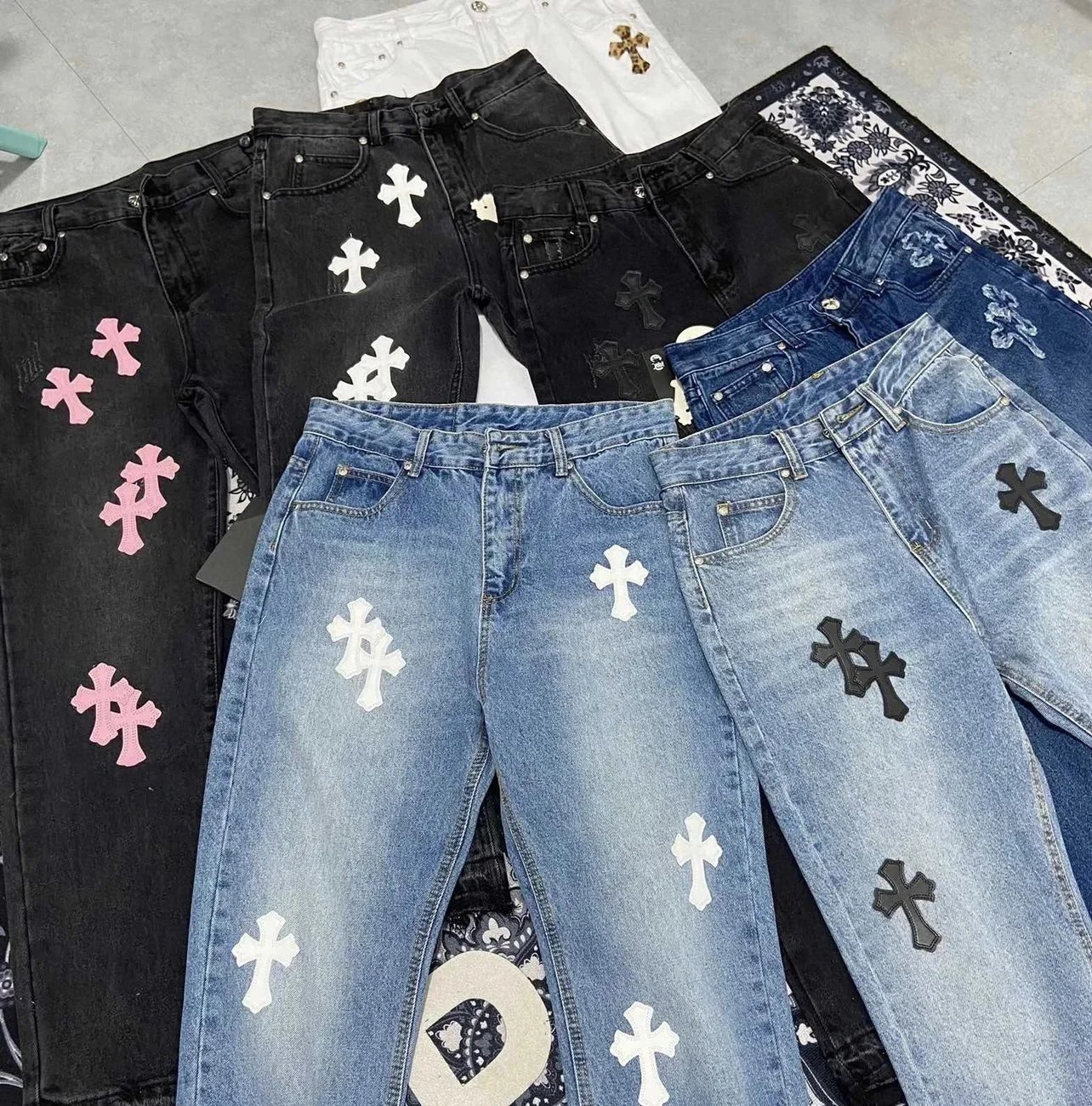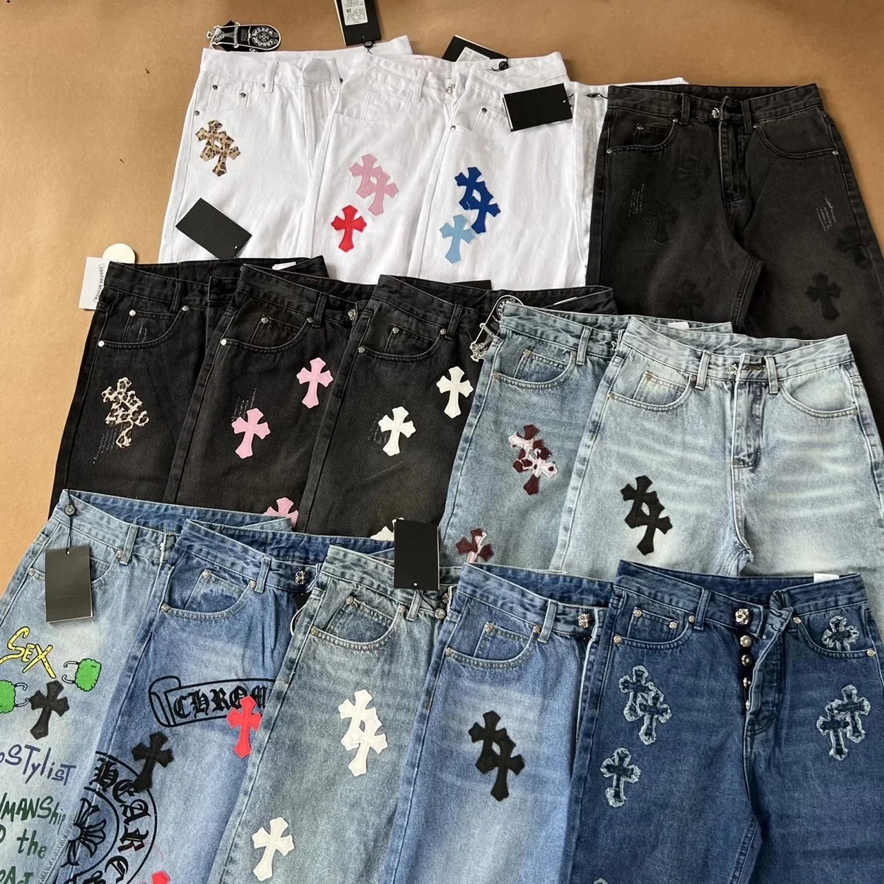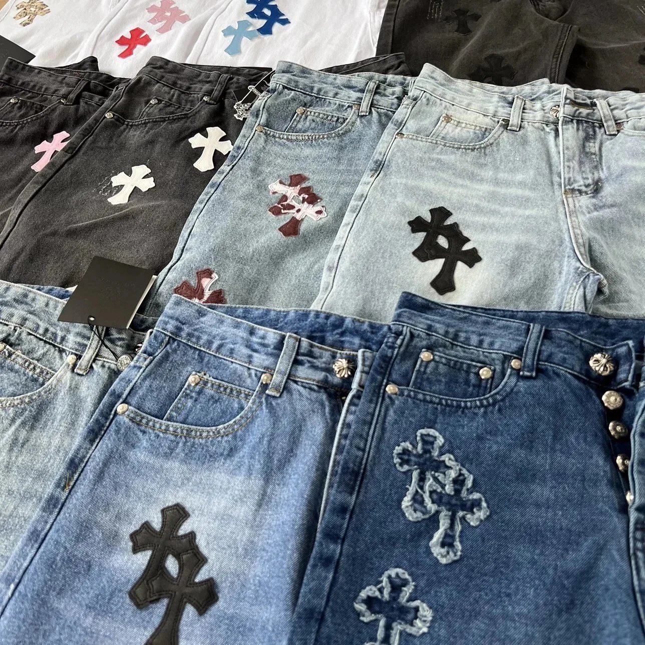 Discover a stylish collection of cross-embroidered denim shorts featuring unique designs in various colors and washes. Perfect for casual and urban fashion lovers.