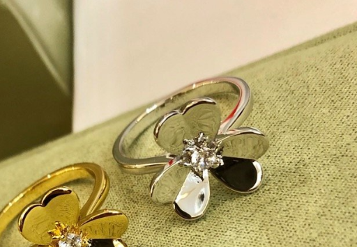 Elegant floral and musical-themed jewelry collection featuring flower rings, guitar pendants, and blue gemstone bracelets in gold, rose gold, and silver finishes.