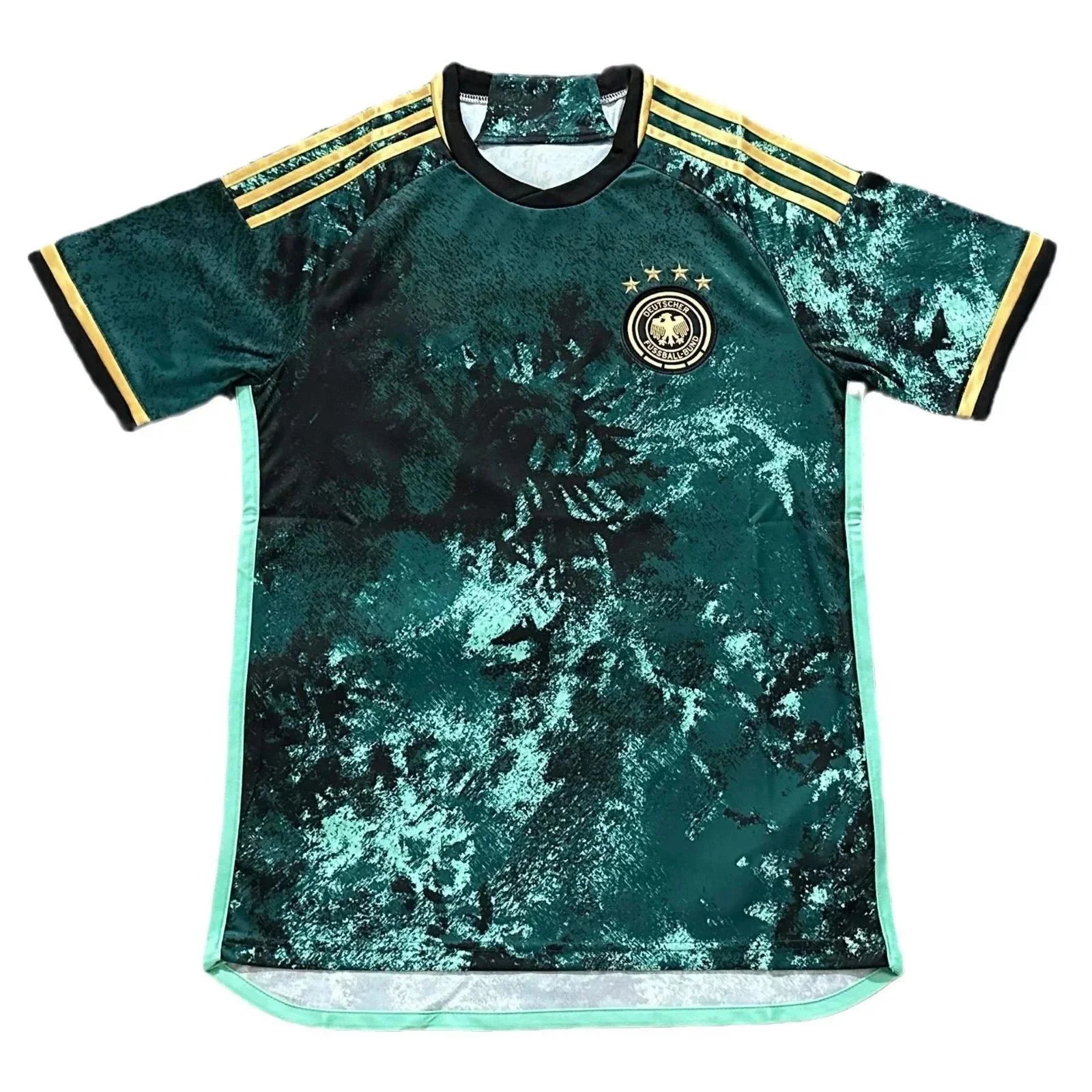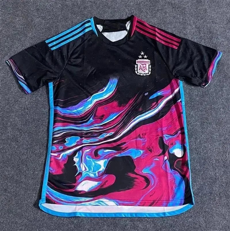 Showcasing a collection of uniquely designed football jerseys featuring bold patterns, national team crests, and vibrant color schemes for competitive play or fan apparel.