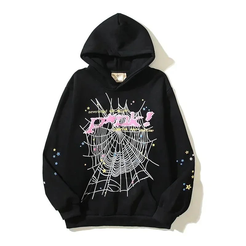 Rock a bold look with this black hoodie featuring glow-in-the-dark stars and stylized lettering. Perfect for casual wear or night outings.