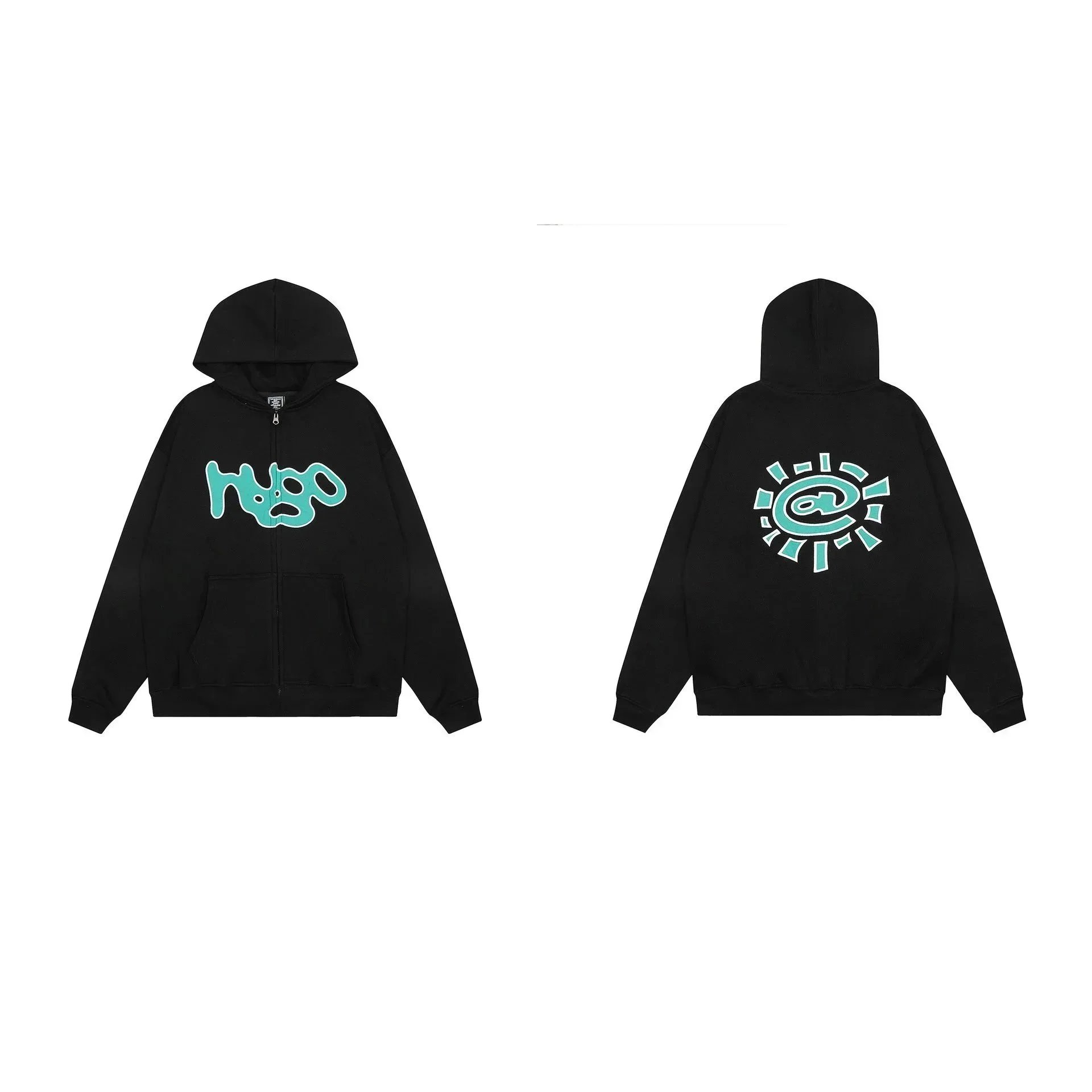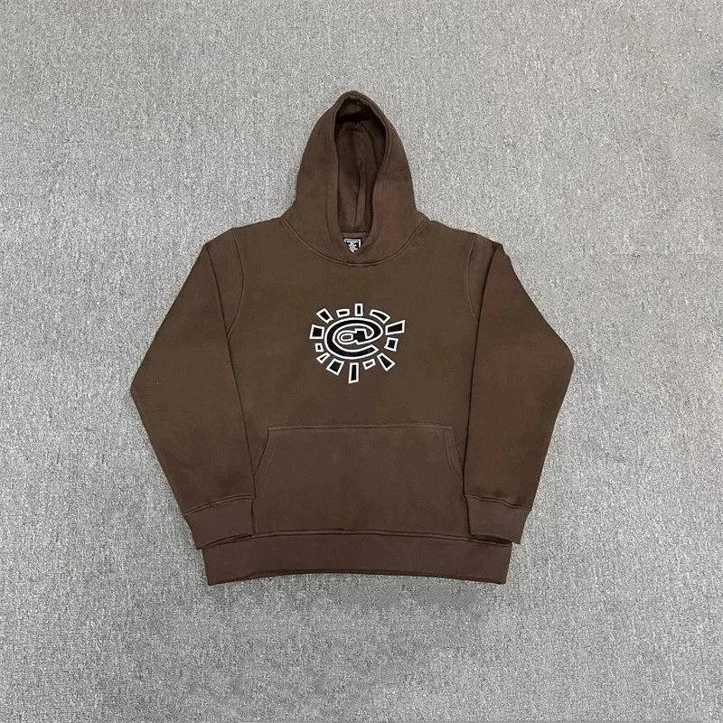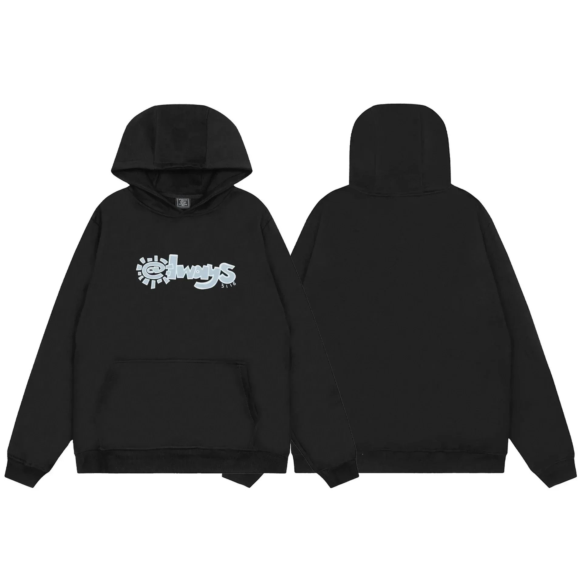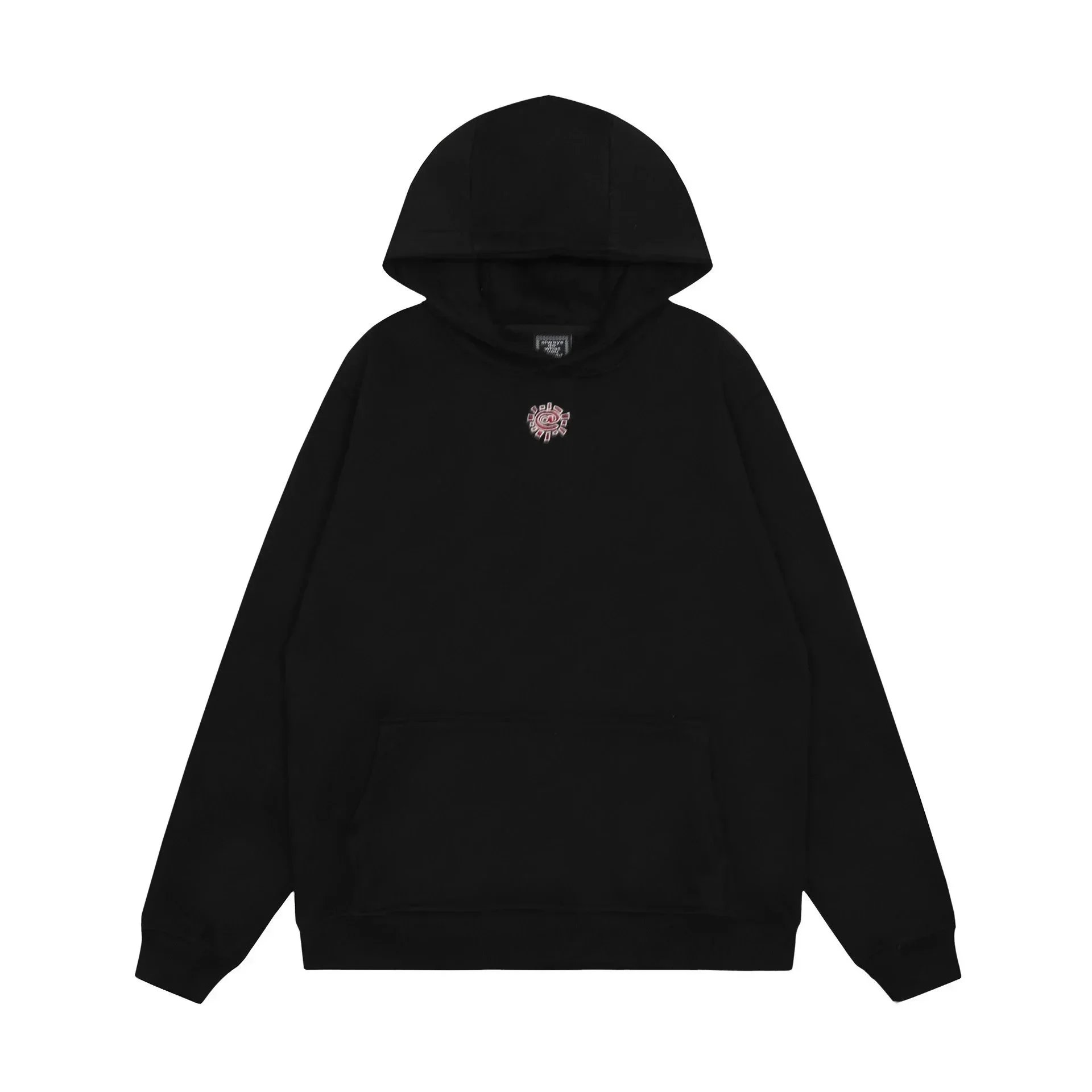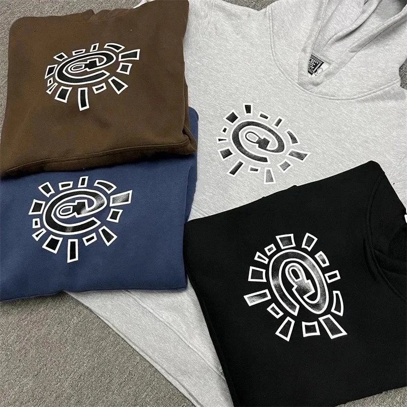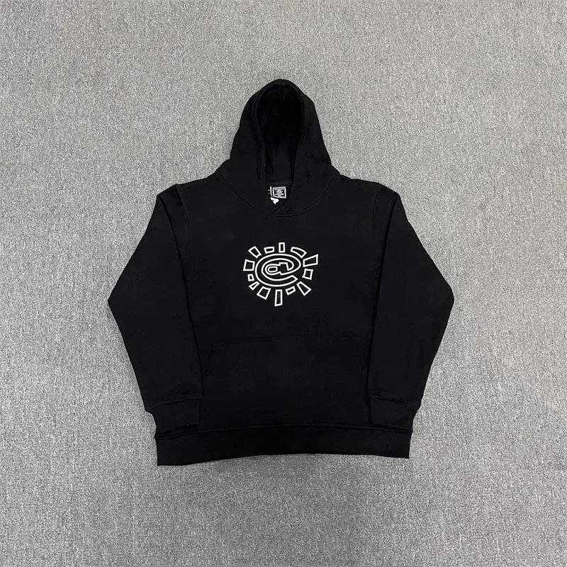 Stylish graphic hoodie featuring a bold sunburst logo design, available in multiple colors for everyday comfort and urban style.