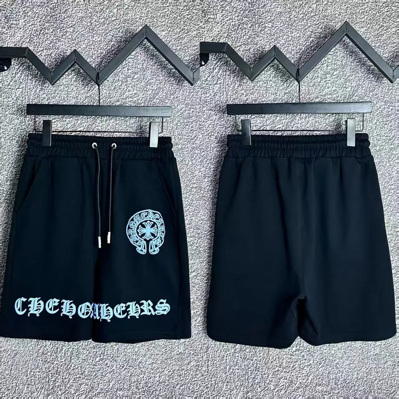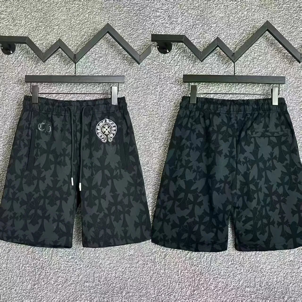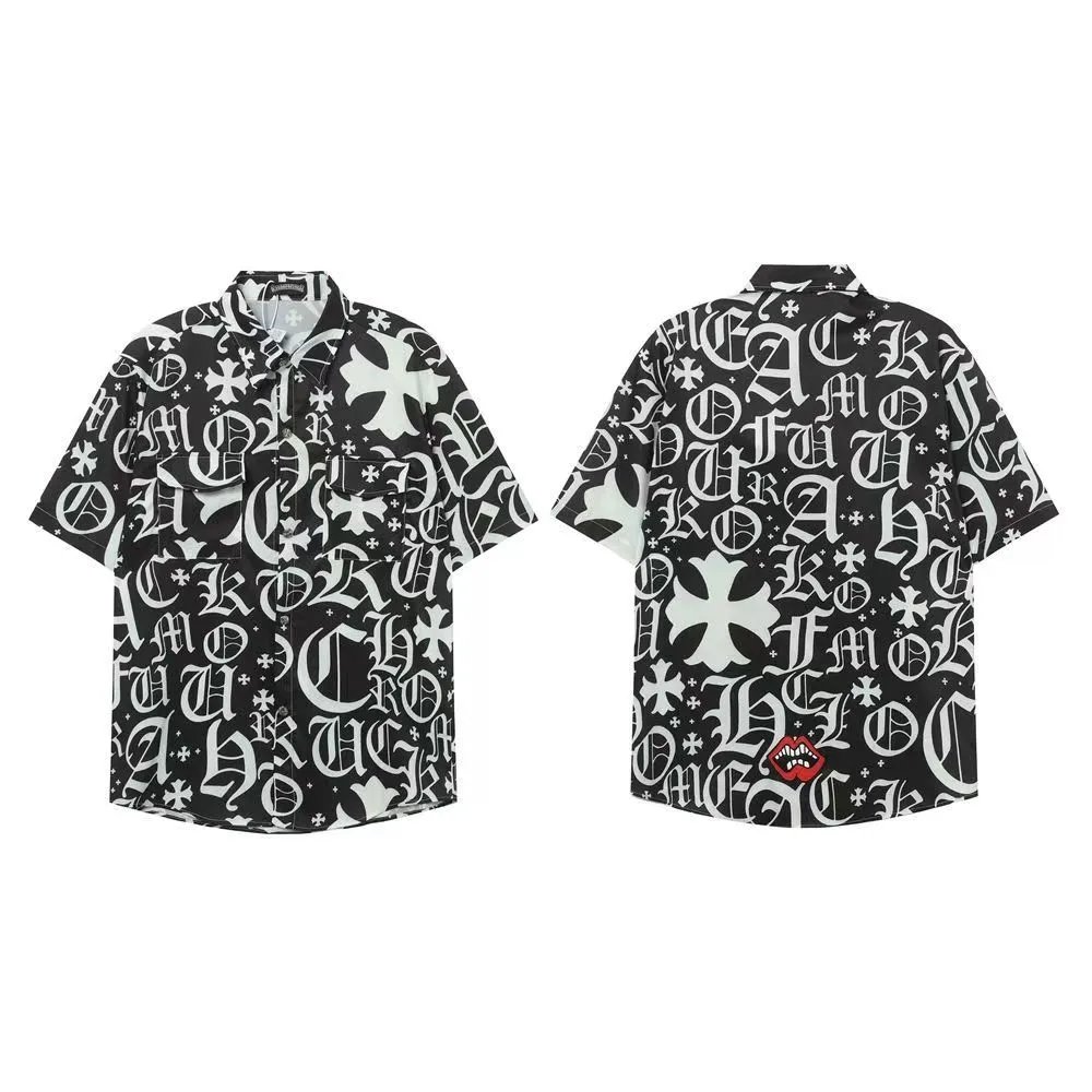Stylish matching Hawaiian shirts and shorts sets featuring bold floral and cross patterns. Perfect for beach outings or casual summer wear.
