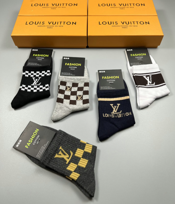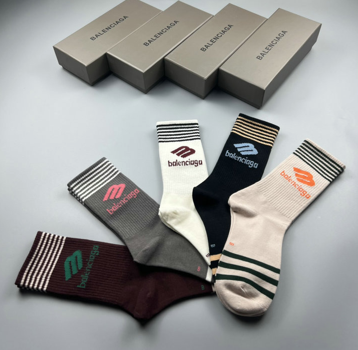 A stylish set of five heart-themed crew socks featuring bold 'A' and 'AN' designs in red, black, and gray. Perfect for Valentine's Day or as a unique gift.