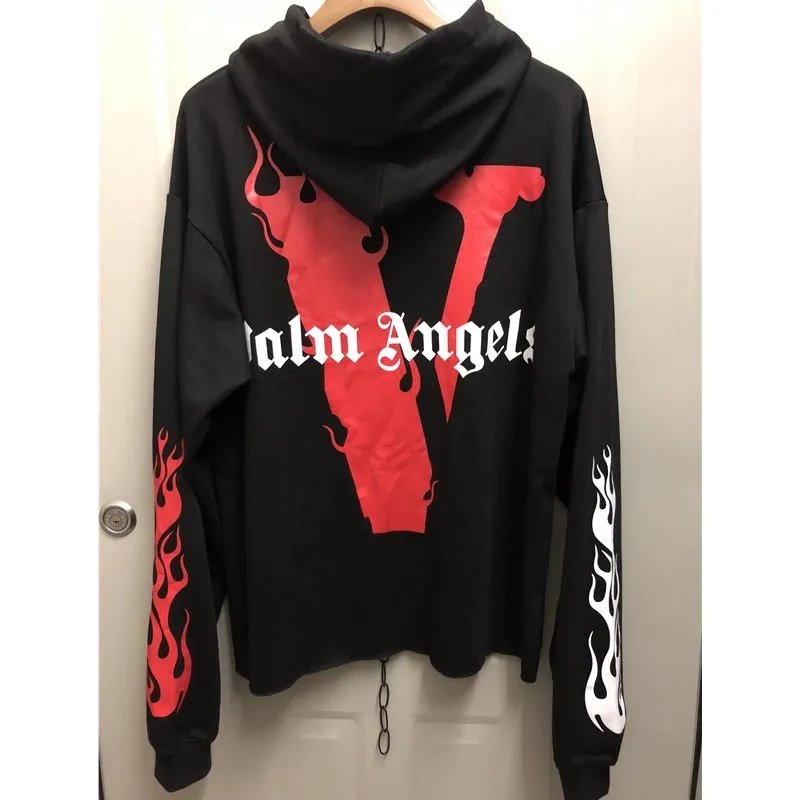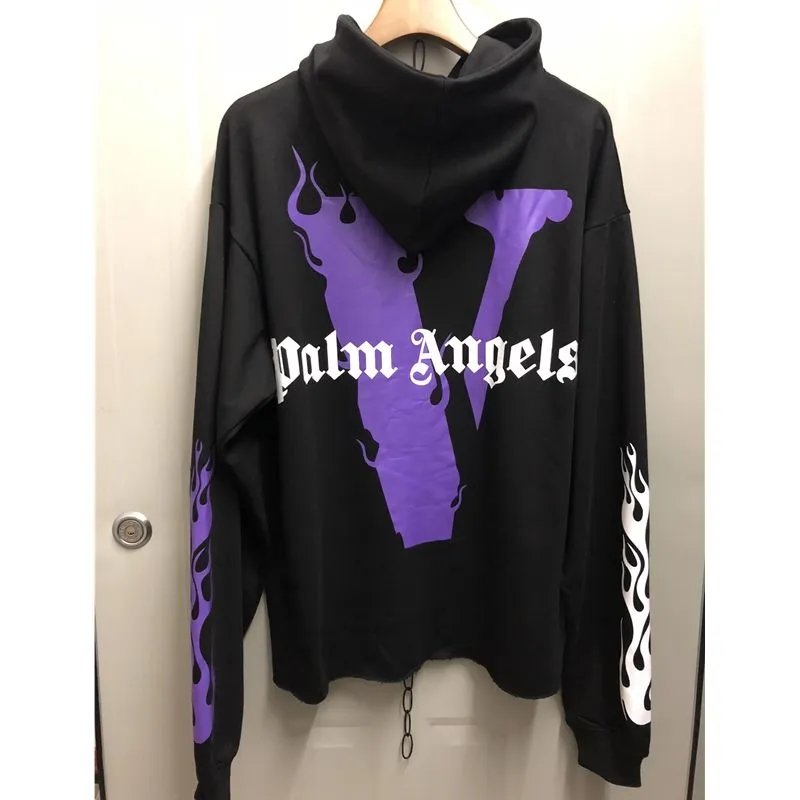 Bold black cropped hoodie featuring 'LONE' in white and purple lettering with contrasting flame graphics on each sleeve — perfect for edgy streetwear style.