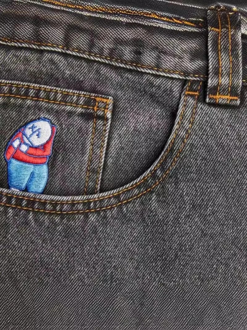 Stylish denim jeans featuring iconic Mario patches on the back pockets. Available in light blue and dark wash options for a fun, playful twist on classic denim.