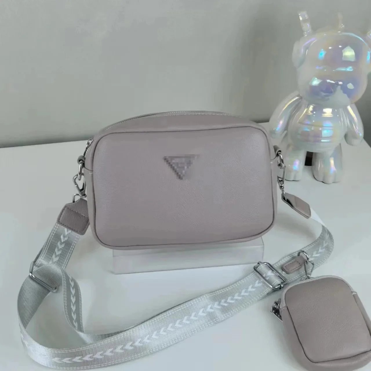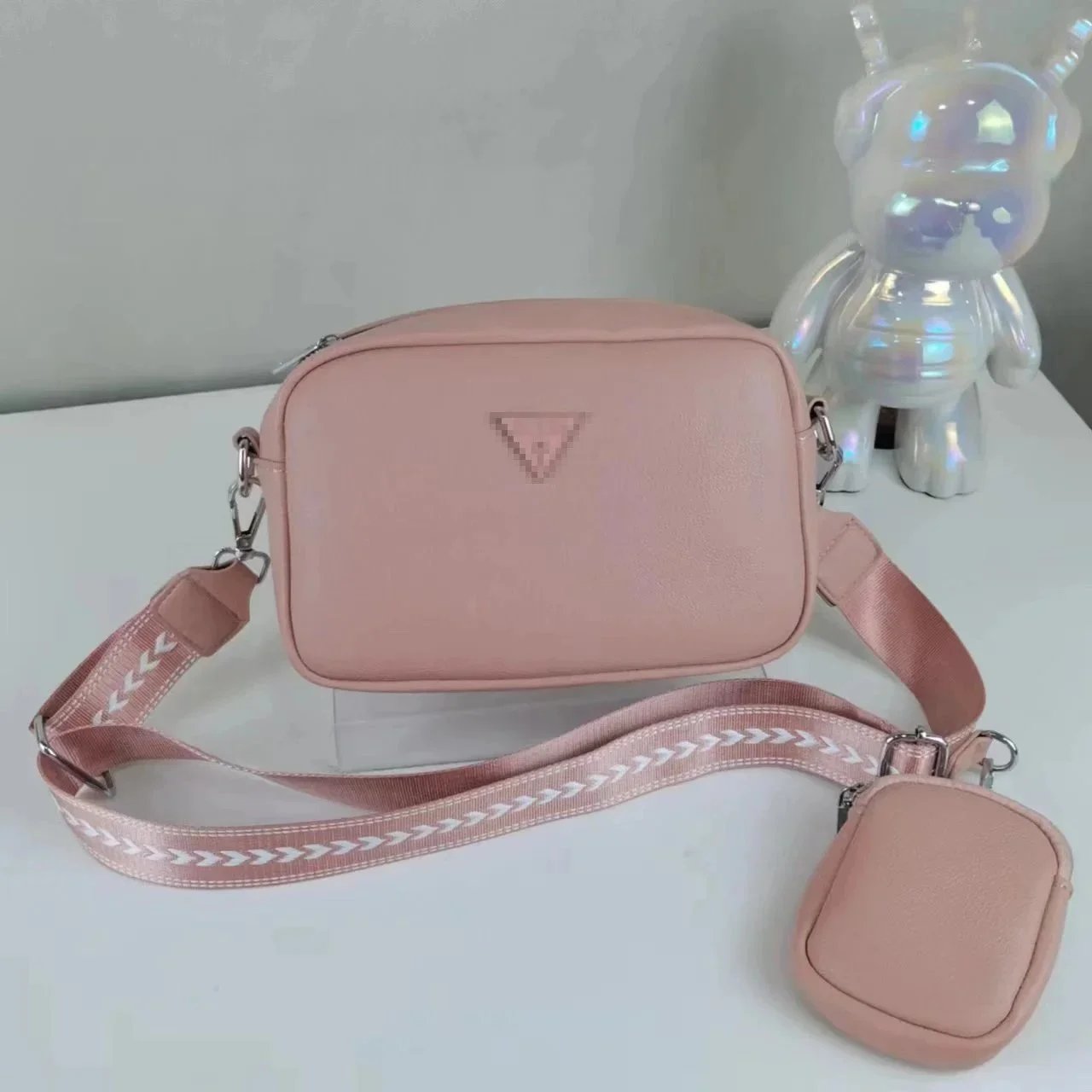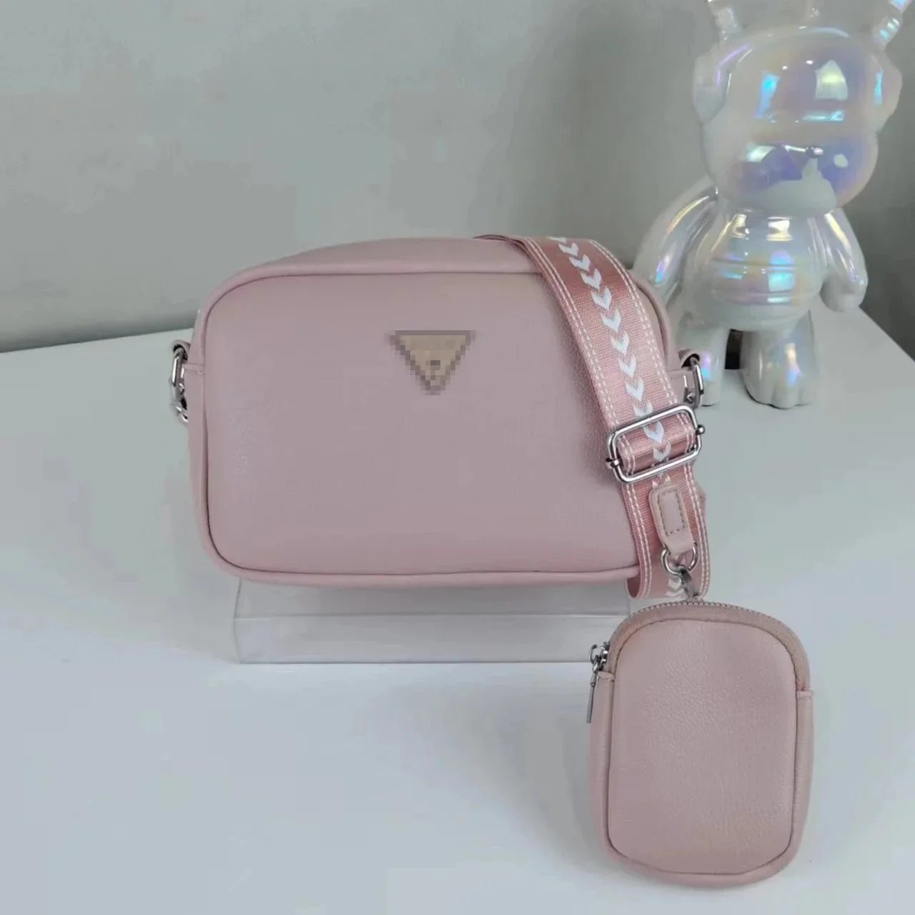 Stylish two-piece crossbody bag set featuring a compact main bag and matching pouch in soft pastel and neutral tones. Perfect for everyday carry with a sleek, modern design.