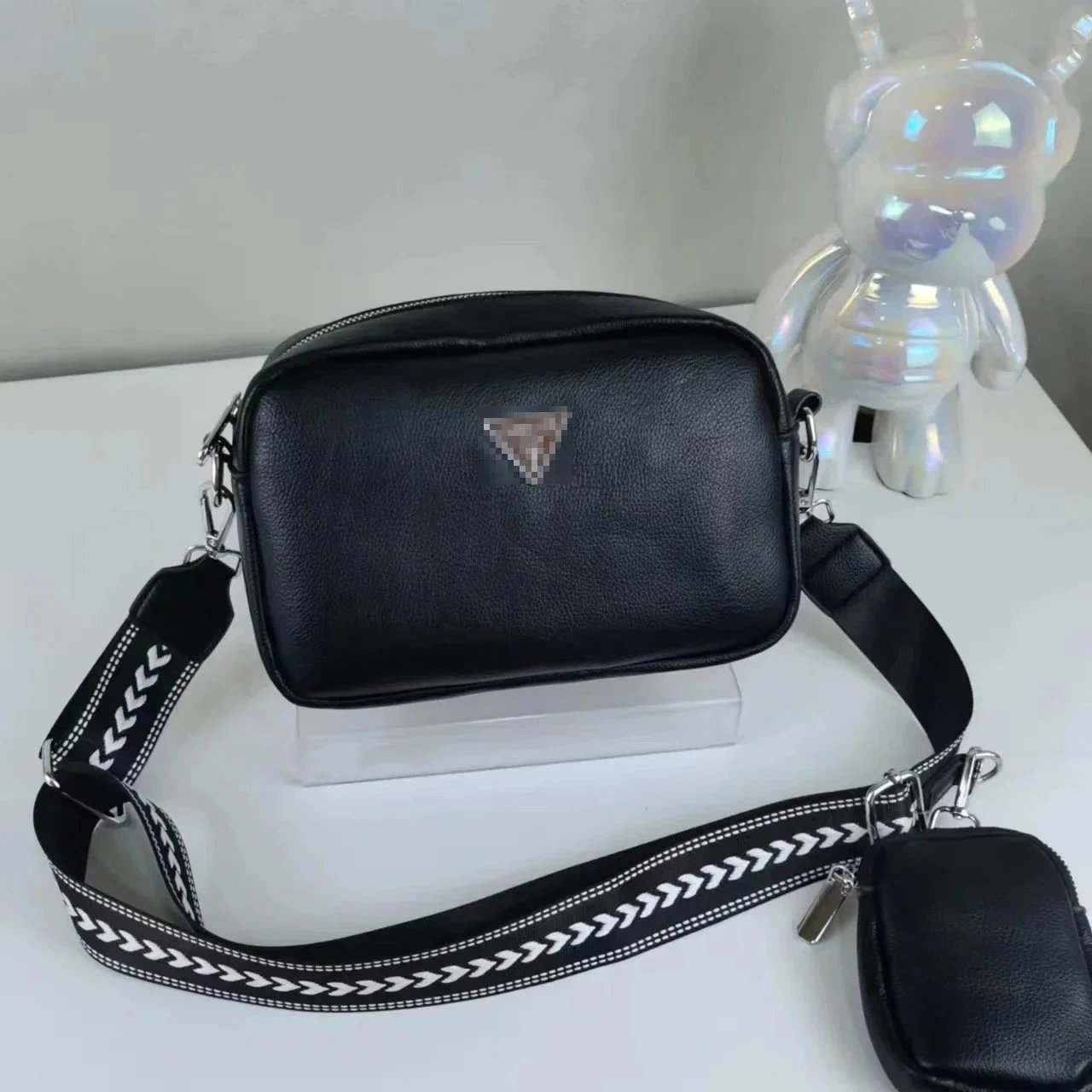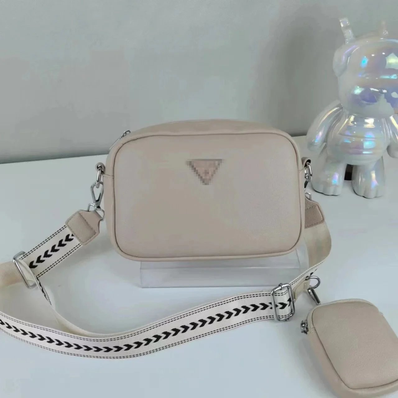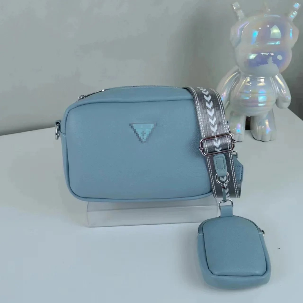 Stylish two-piece crossbody bag set featuring a compact main bag and matching pouch in soft pastel and neutral tones. Perfect for everyday carry with a sleek, modern design.