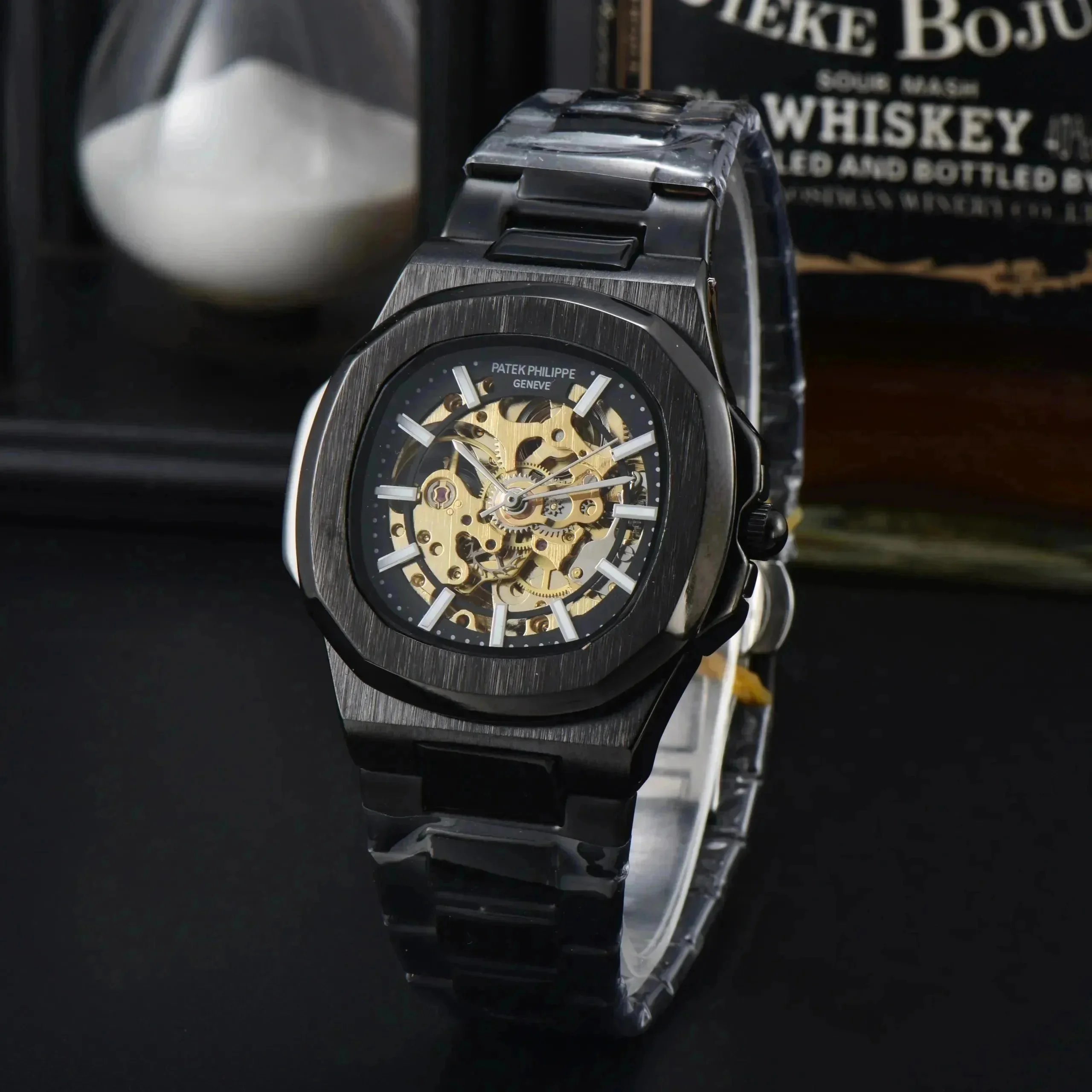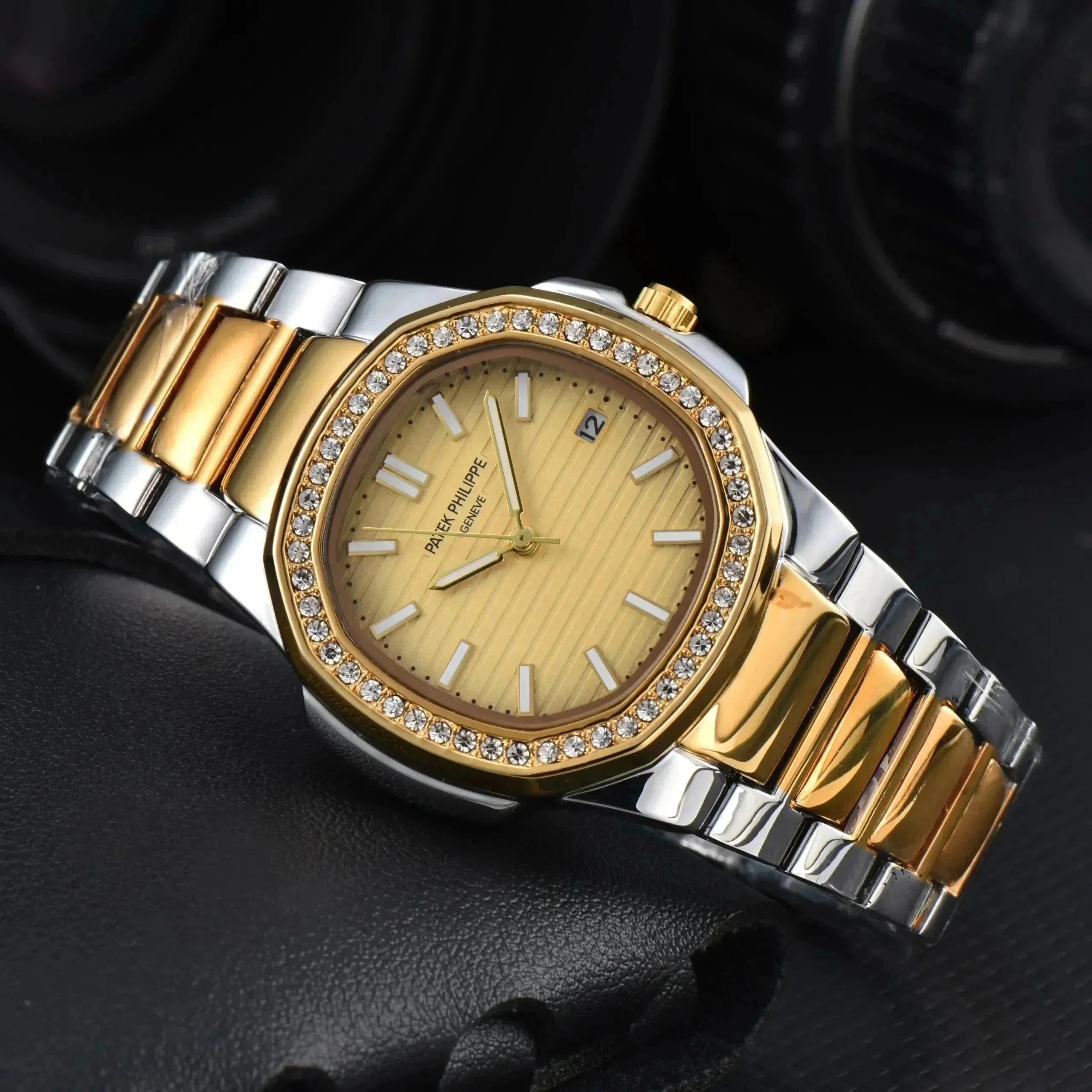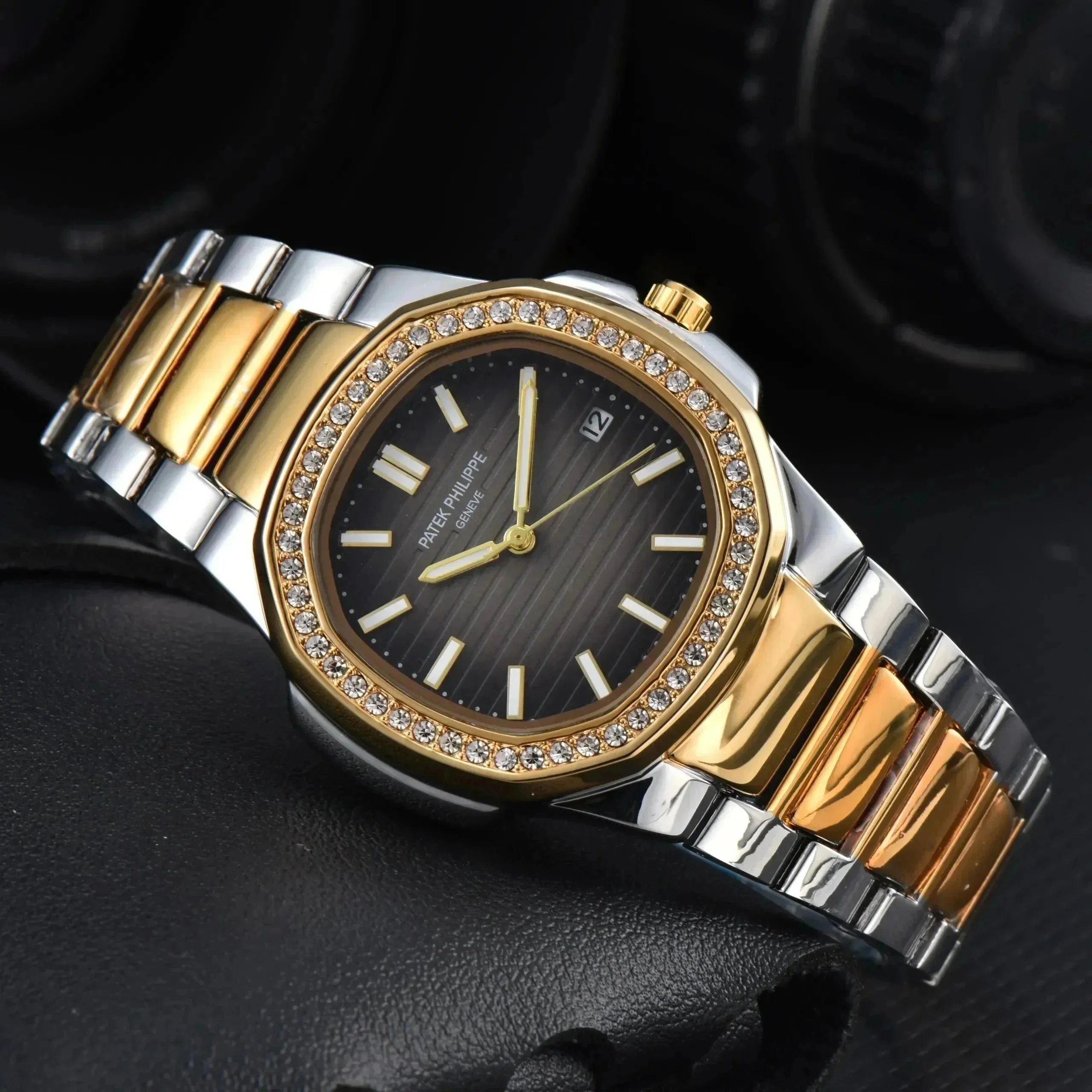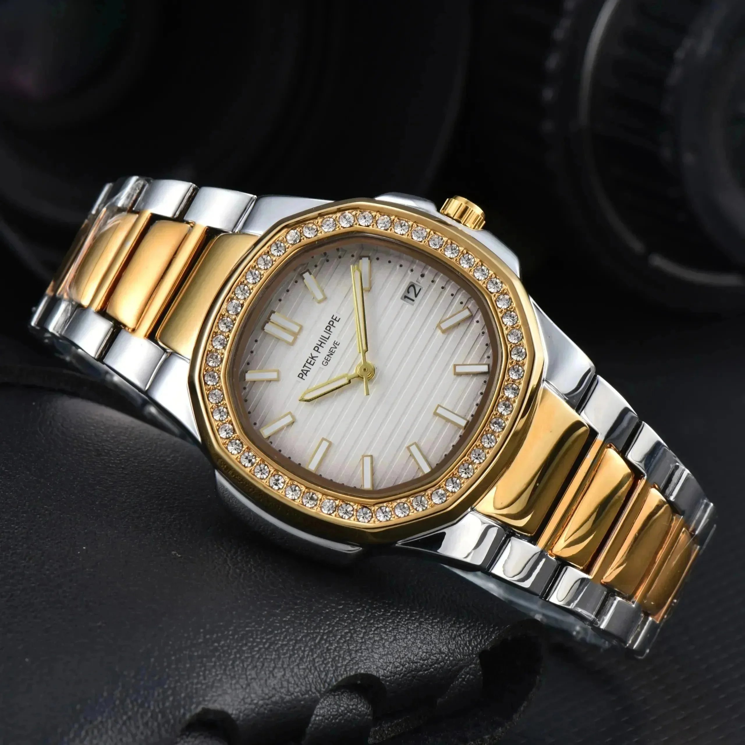 High-end replica watches inspired by Patek Philippe, featuring diamond-set bezels, skeleton dials, and octagonal cases in various colorways and finishes for a premium look.