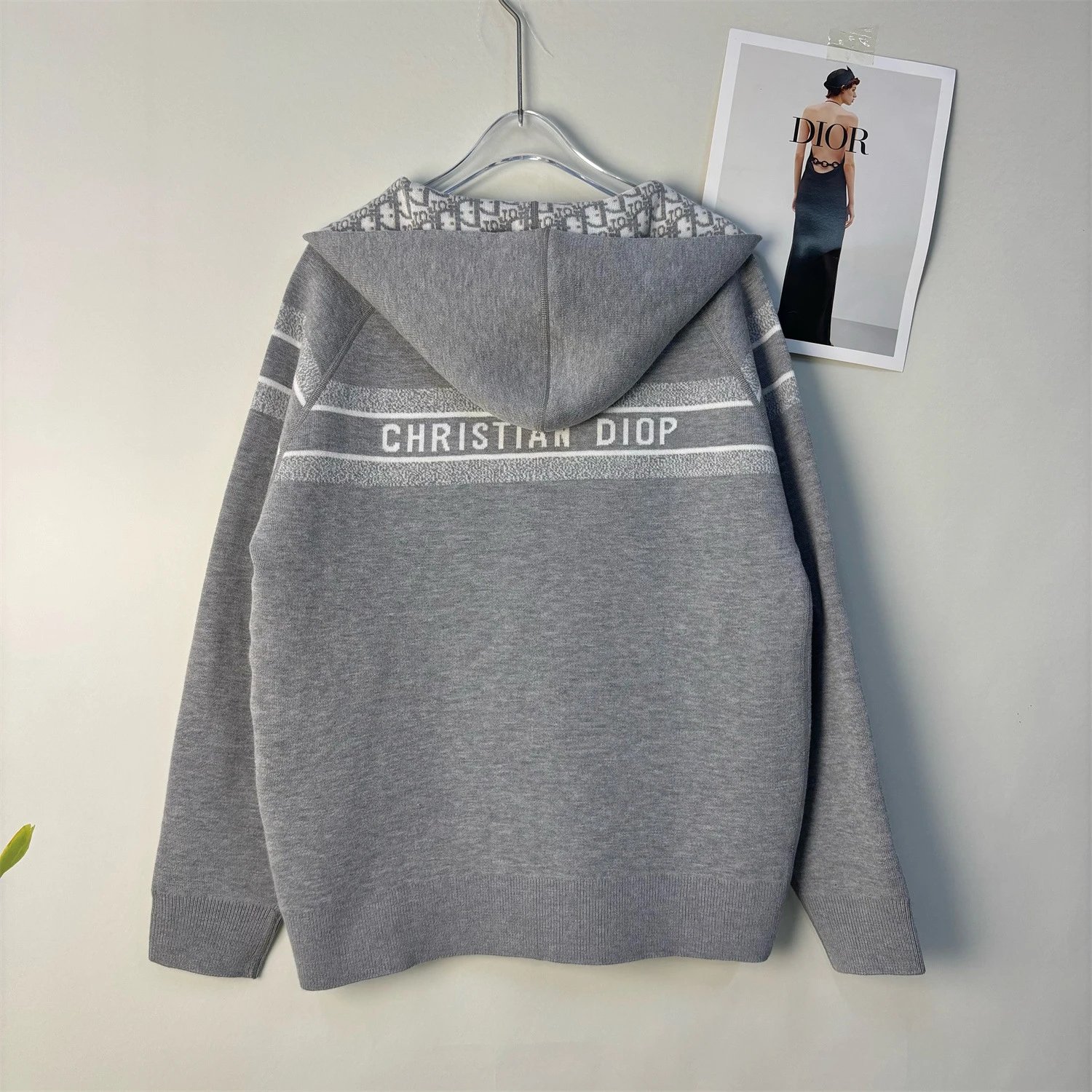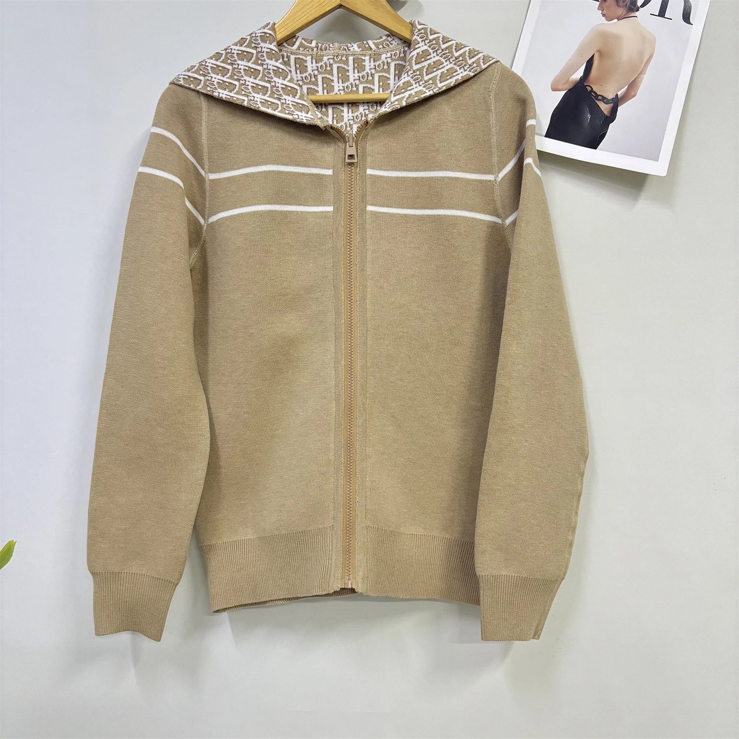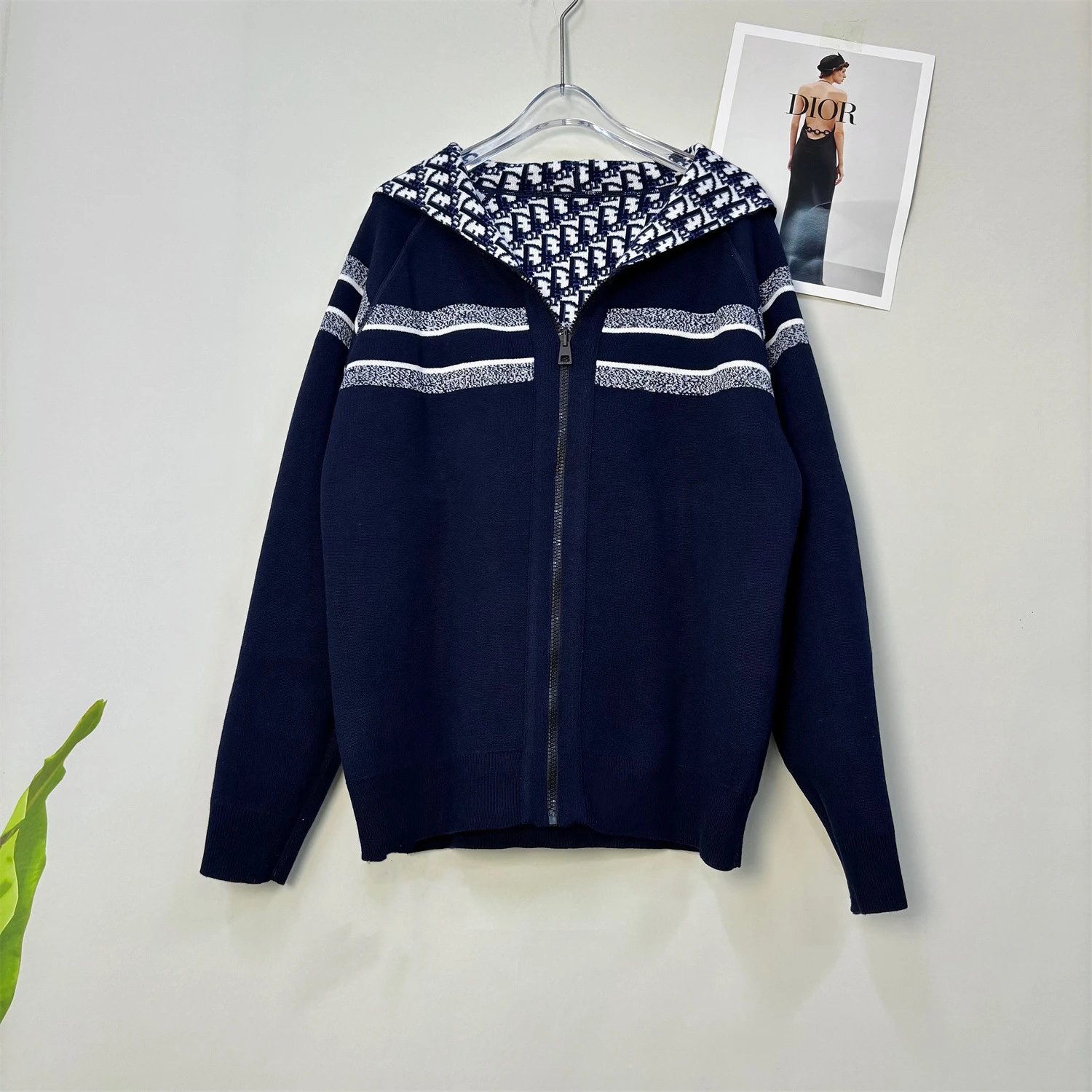 Stylish zip-up hoodie featuring a bold monogram pattern in navy or gray. Perfect for casual wear with a modern, elevated look.