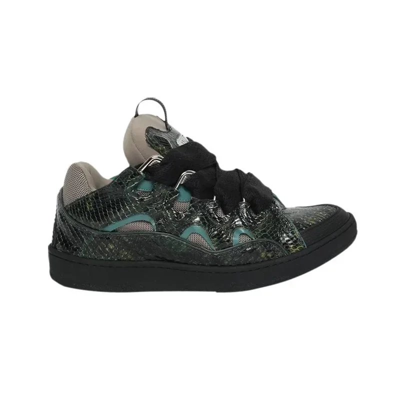 Discover trendy patterned sneakers featuring snake print and chevron laces, perfect for casual streetwear and everyday comfort.