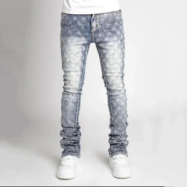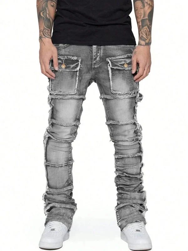 Explore a diverse collection of ripped and distressed denim jeans for men featuring multiple washes, graphic prints, and unique patchwork details. Perfect for edgy streetwear styles.