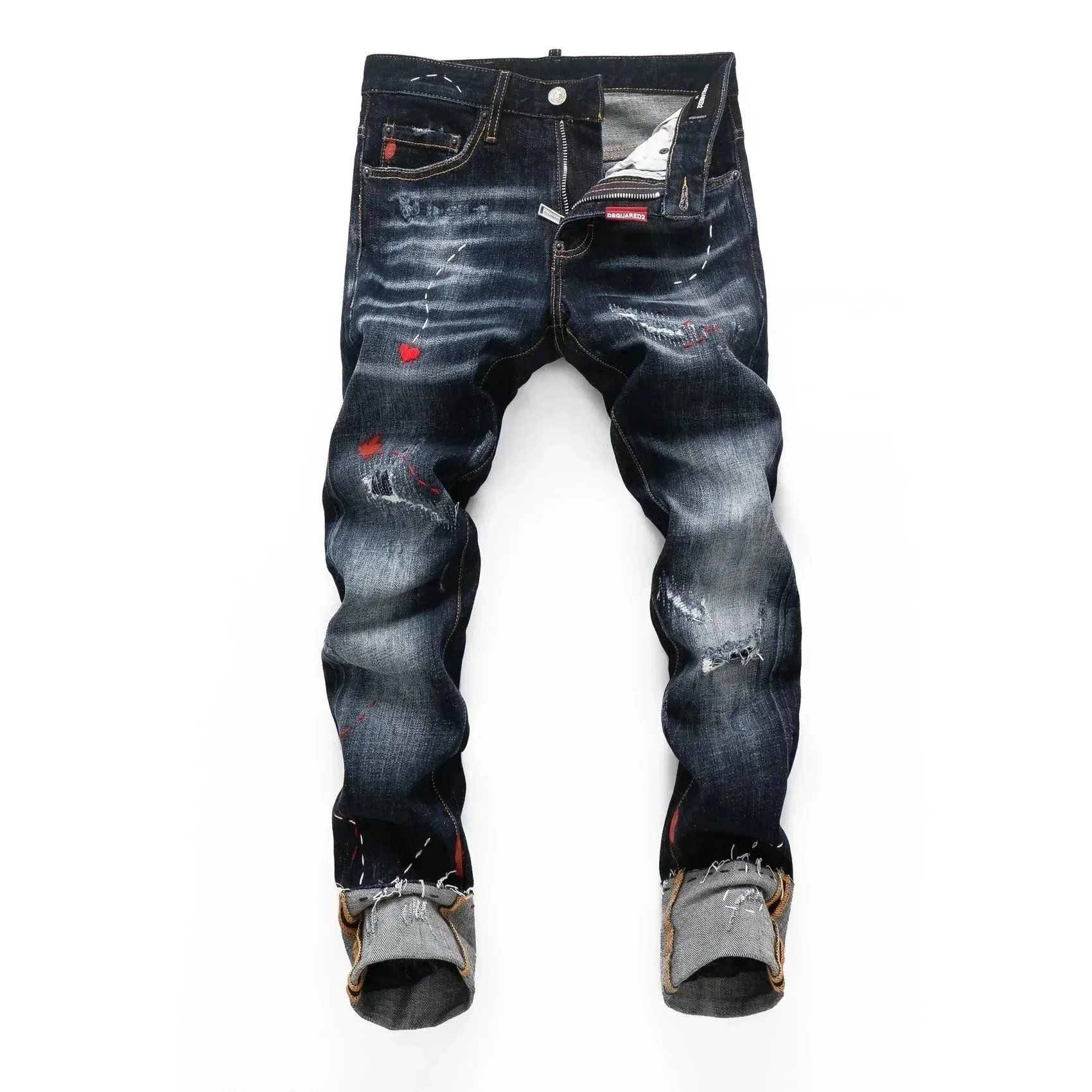 Stylish black jeans featuring a unique paint splatter design and deliberate rips for a bold, edgy look. Perfect for fashion-forward individuals seeking standout denim.