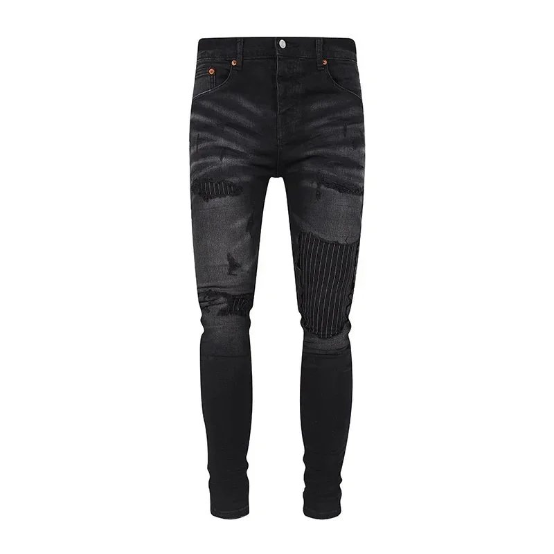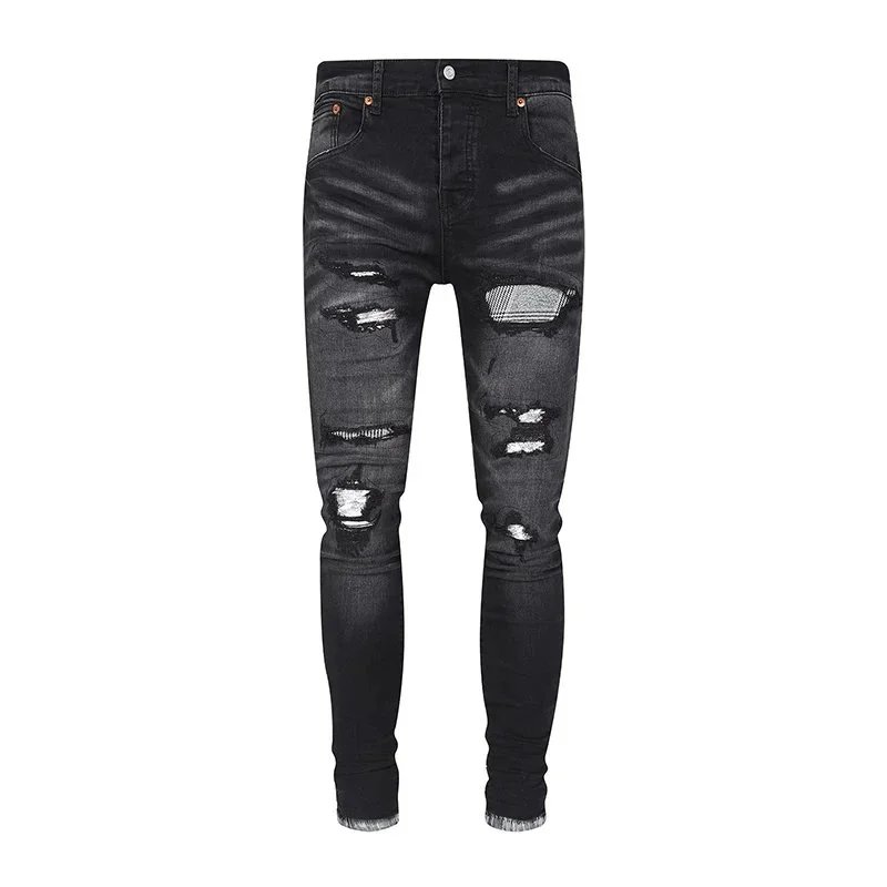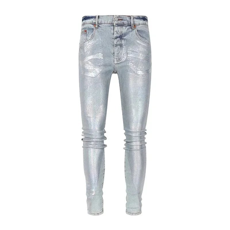 Purple Denim Jeans with Distressed & Paint Splatter Styles