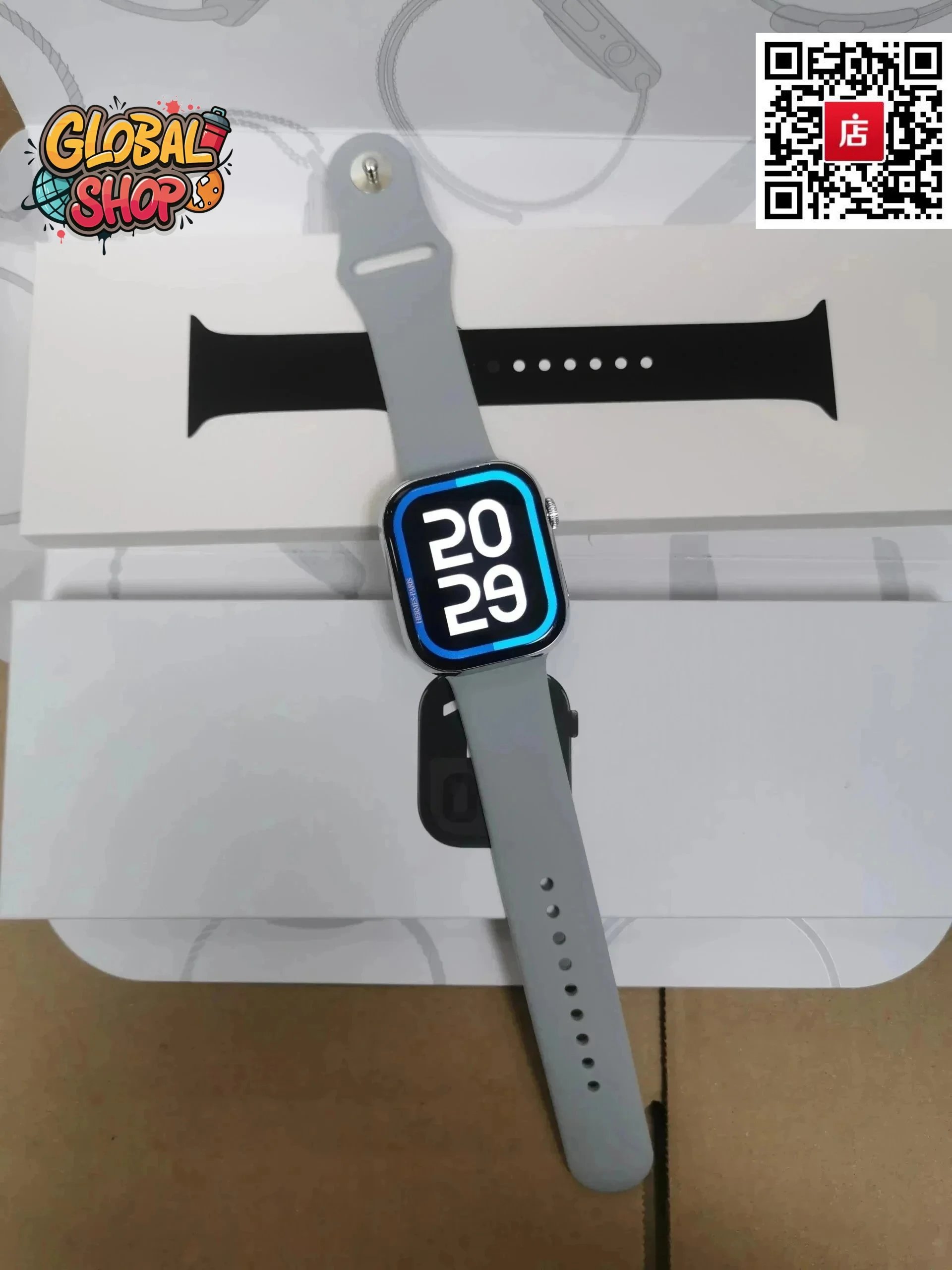 Stylish smartwatch featuring a sleek silver case and black strap, perfect for everyday use and fitness tracking.