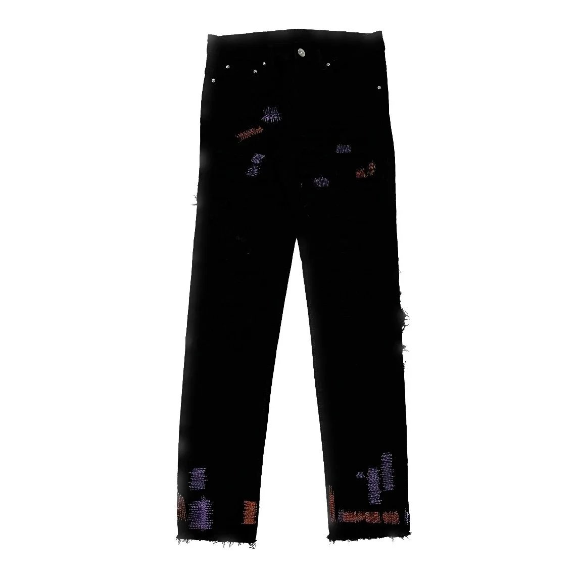 Purple Denim Jeans with Distressed & Paint Splatter Styles