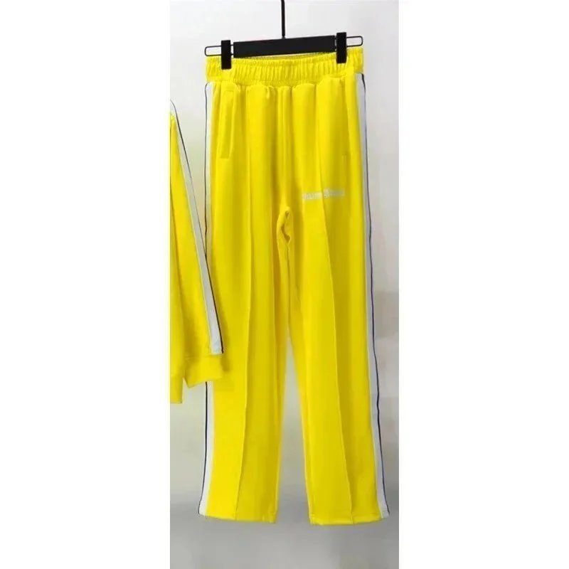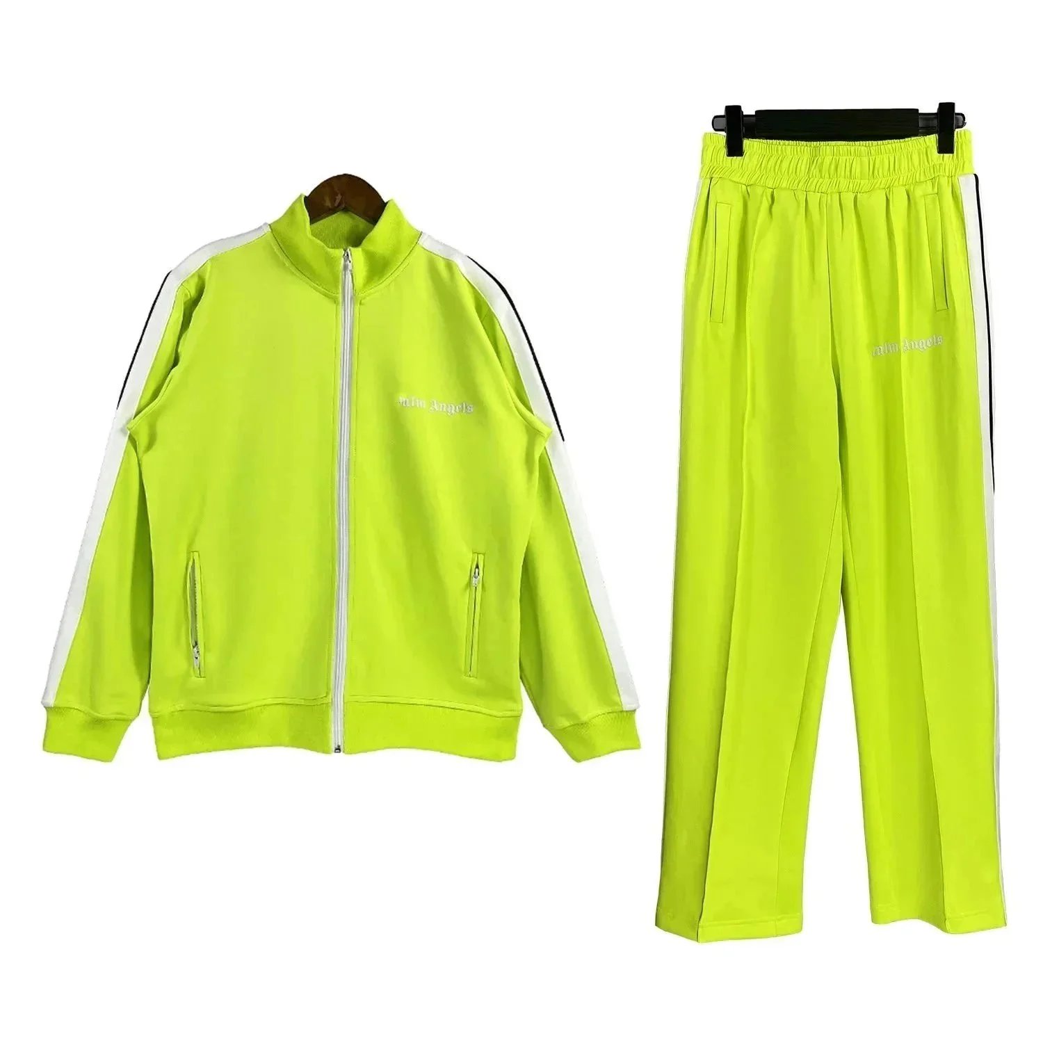 Vibrant stripe track suits in multiple colors featuring matching hoodies and pants. Perfect for casual wear or light workouts.