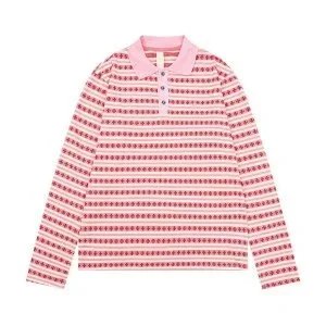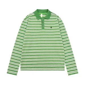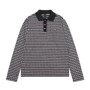 A stylish long-sleeve striped polo shirt featuring a contrasting black collar, perfect for casual or smart-casual occasions.