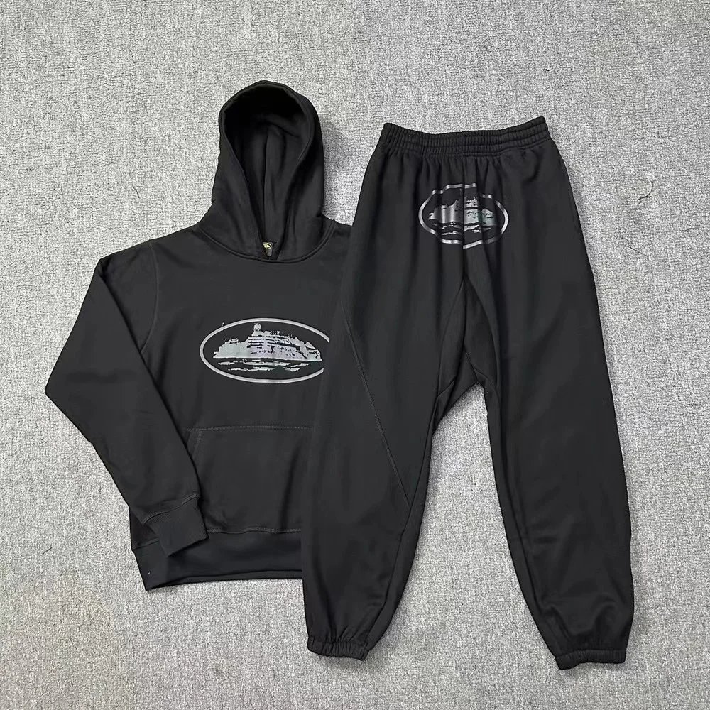 Comfortable unisex hoodie and jogger sets available in multiple colors. Perfect for lounging or casual outings with a stylish graphic design.