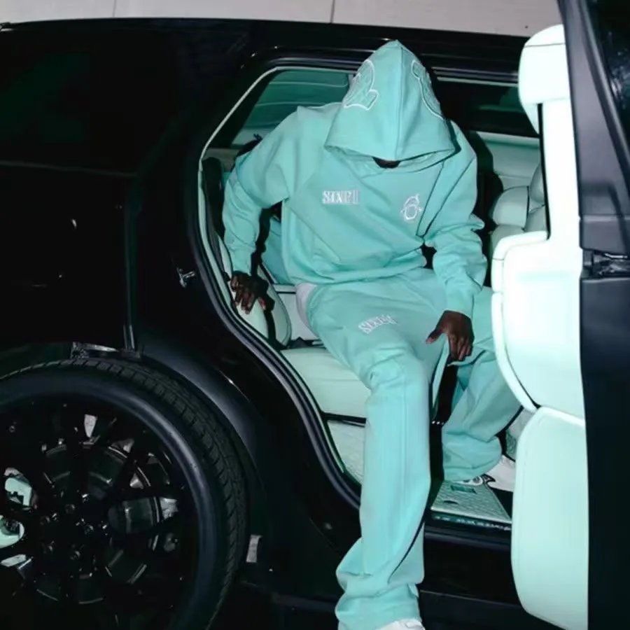 Shop cozy unisex hoodie and jogger sets in trendy pastel and classic black. Perfect for lounging or streetwear style.