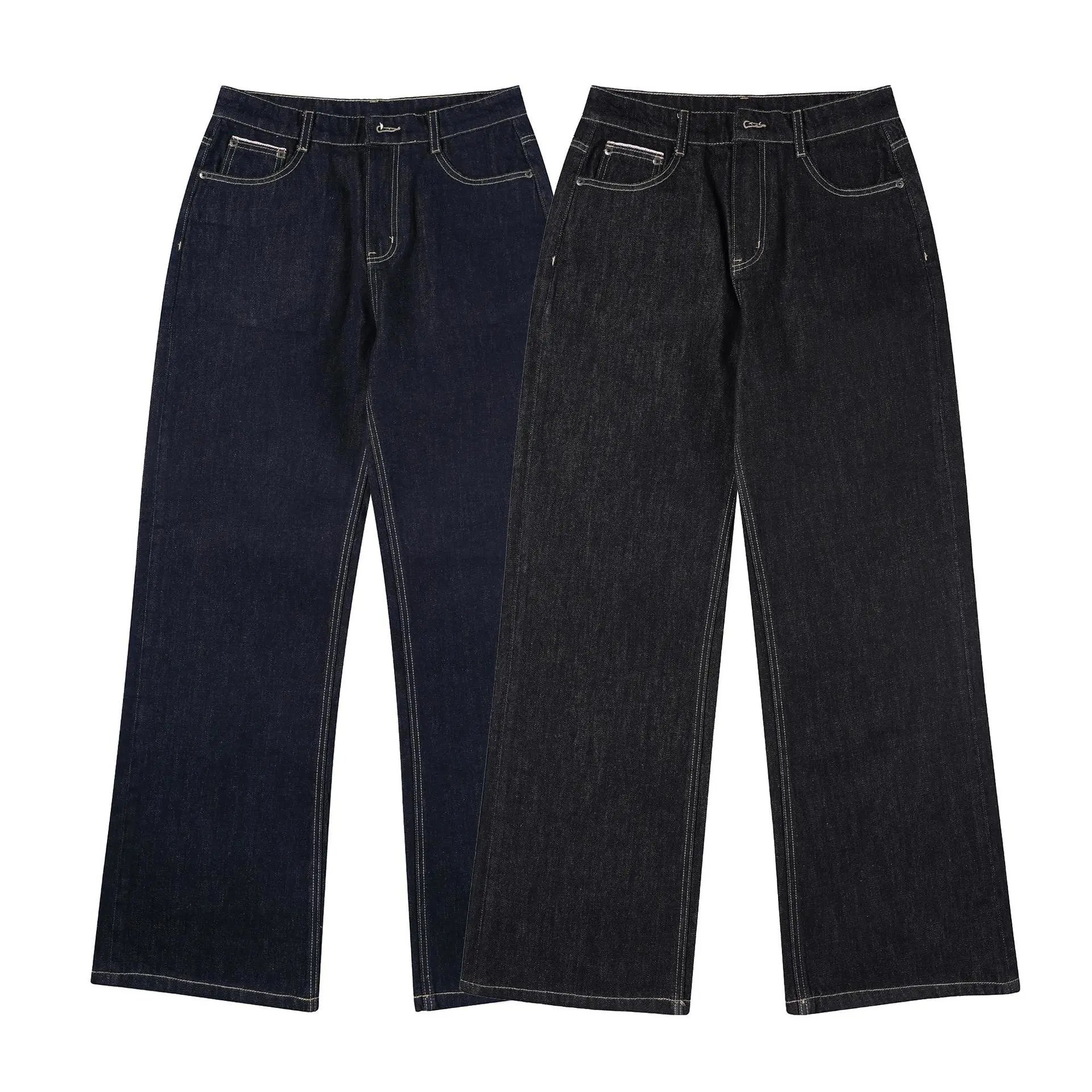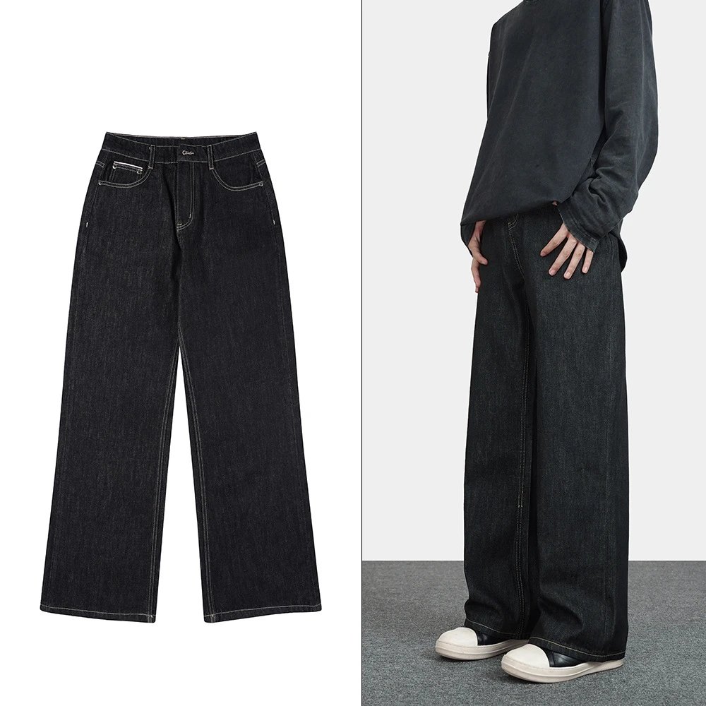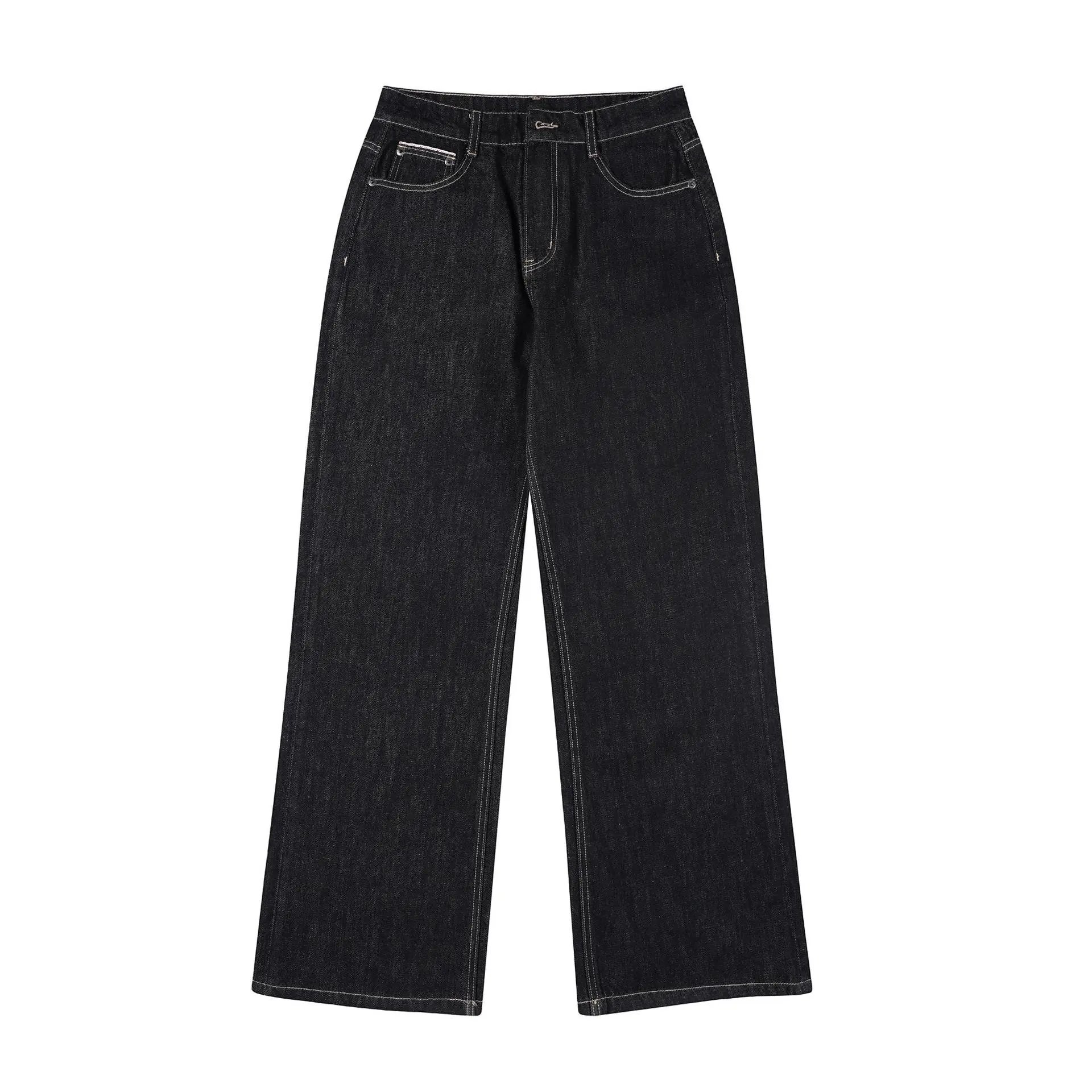 Stylish black wide-leg denim pants featuring a high-rise fit and relaxed silhouette. Perfect for a modern, minimalist look with comfort and versatility.