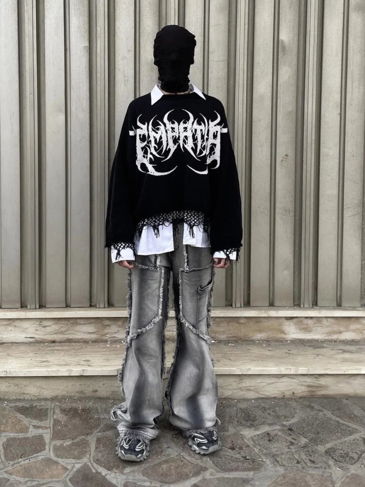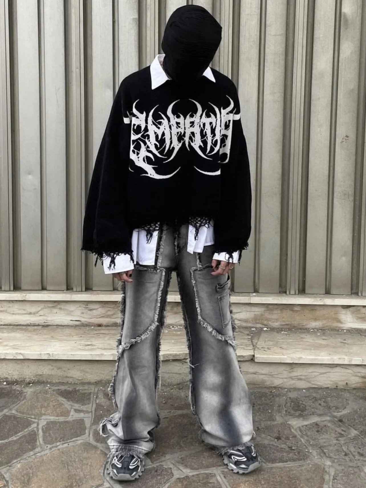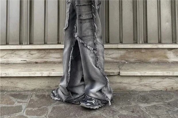 Stylish wide-leg cargo denim pants featuring frayed edges and multiple pockets. Perfect for a bold, edgy look with a modern twist on classic denim.