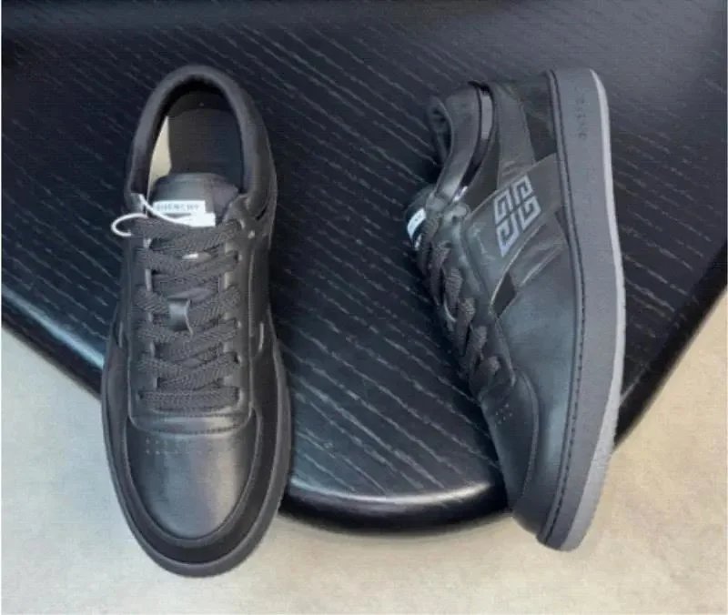 Elevate your streetwear with Givenchy’s sleek black leather sneakers featuring the iconic GG logo and premium craftsmanship.