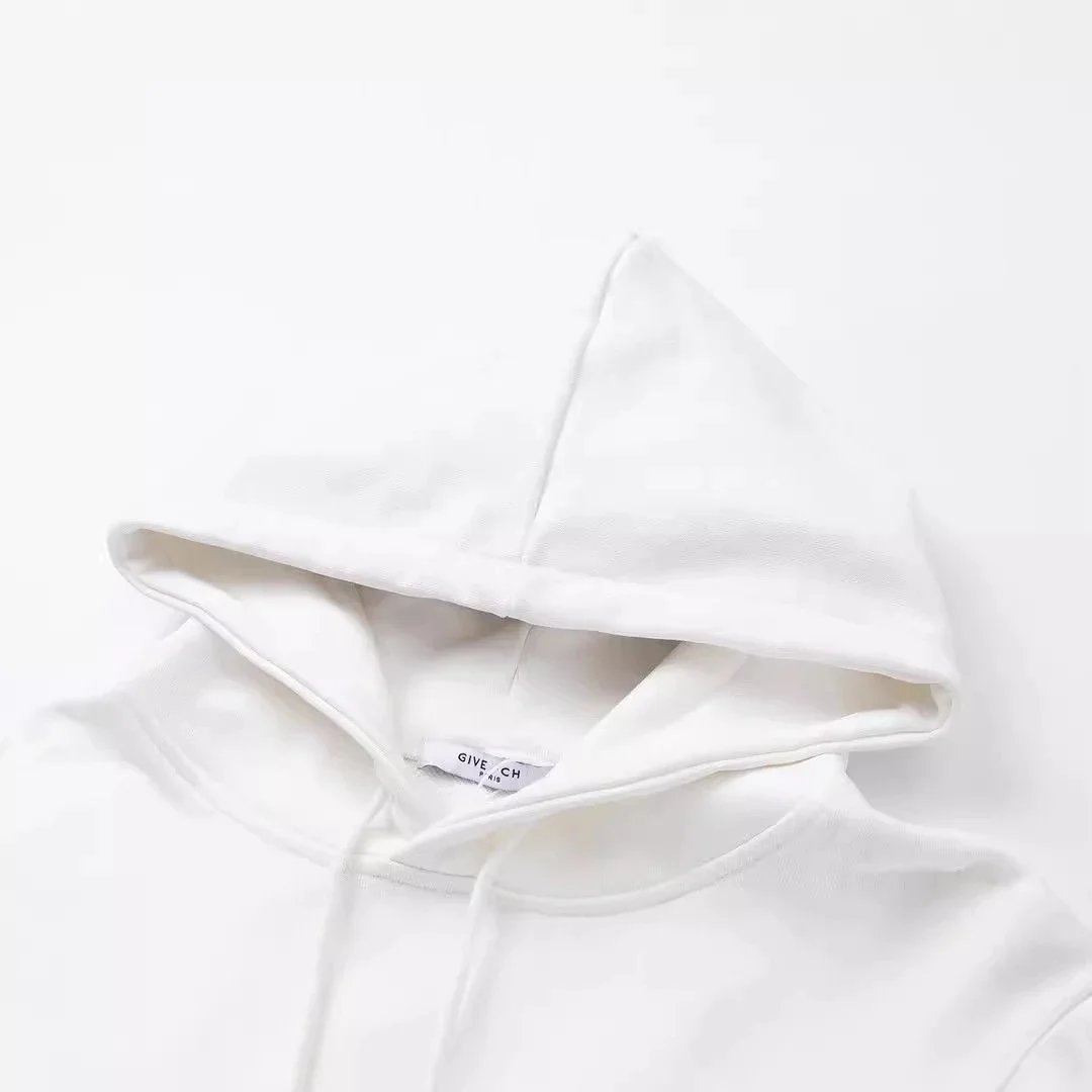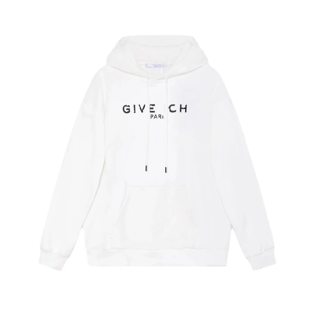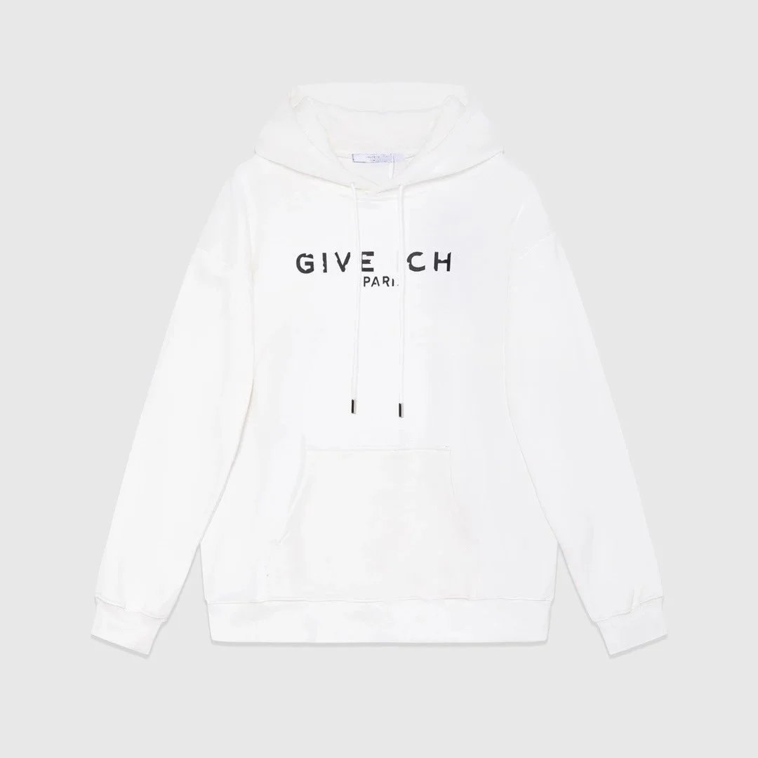 Elevate your casual look with this premium Givenchy white hoodie featuring a bold logo print and classic Paris branding.