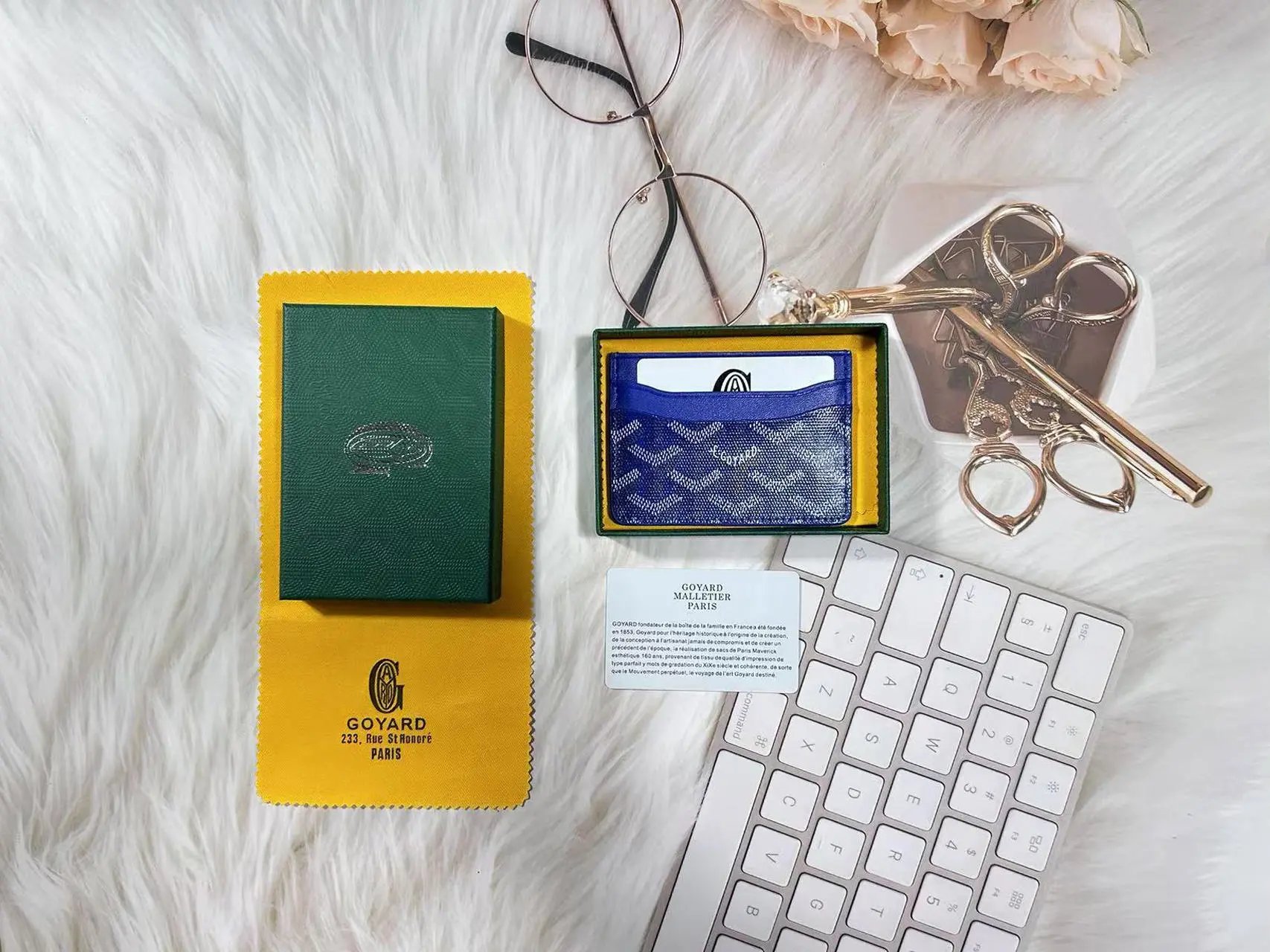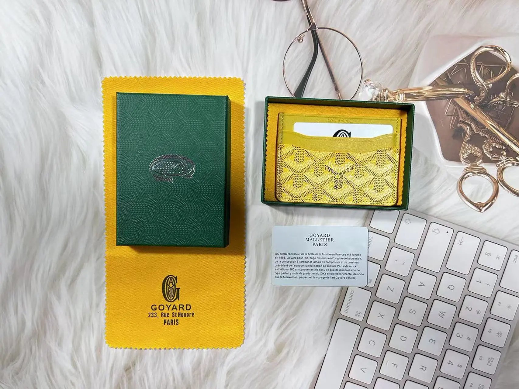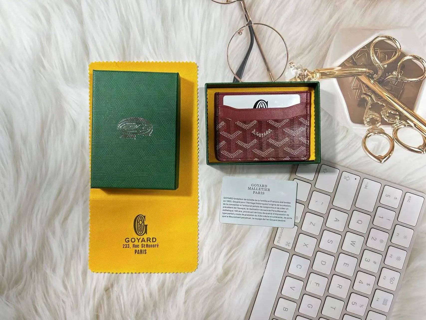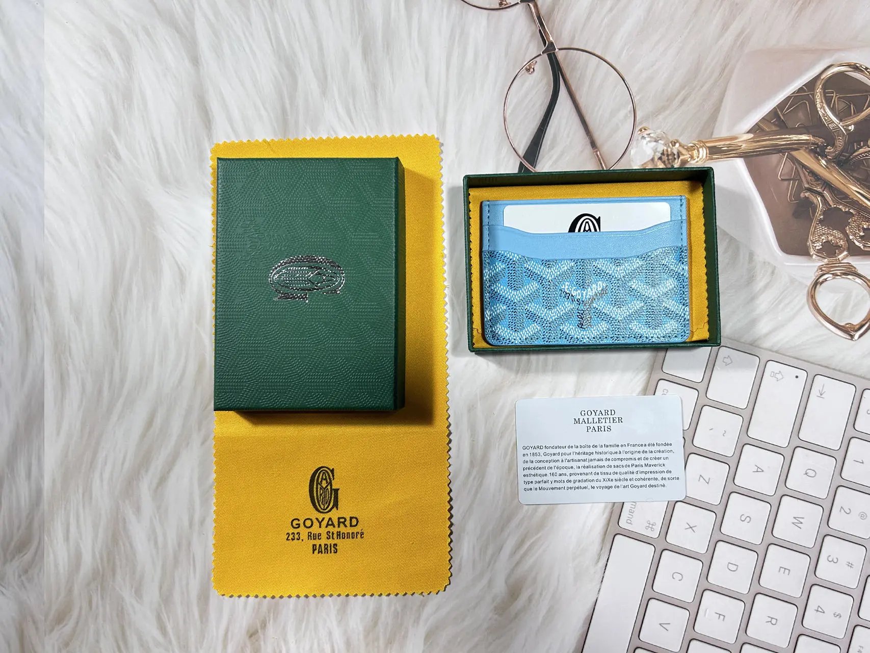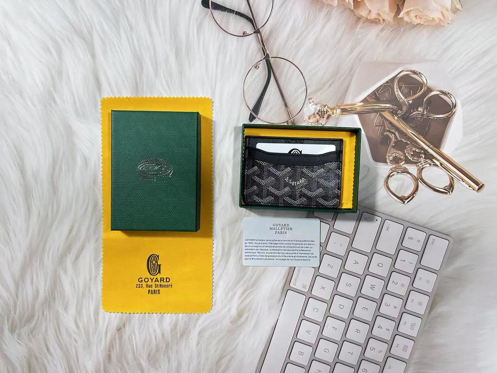 Discover the elegant Goyard card holders featuring signature monogram patterns in various colors. Crafted with premium materials, these compact wallets combine timeless style with practical design.