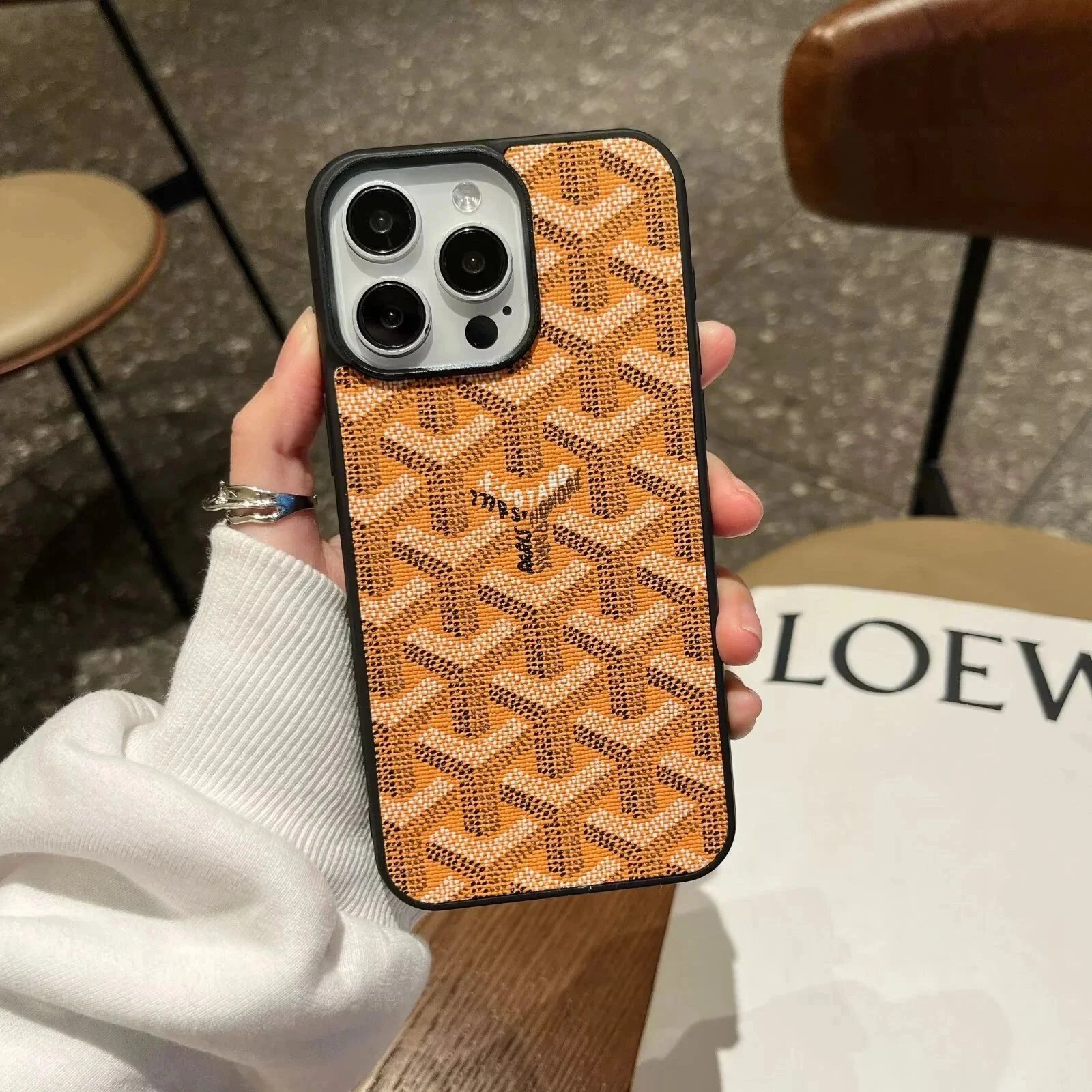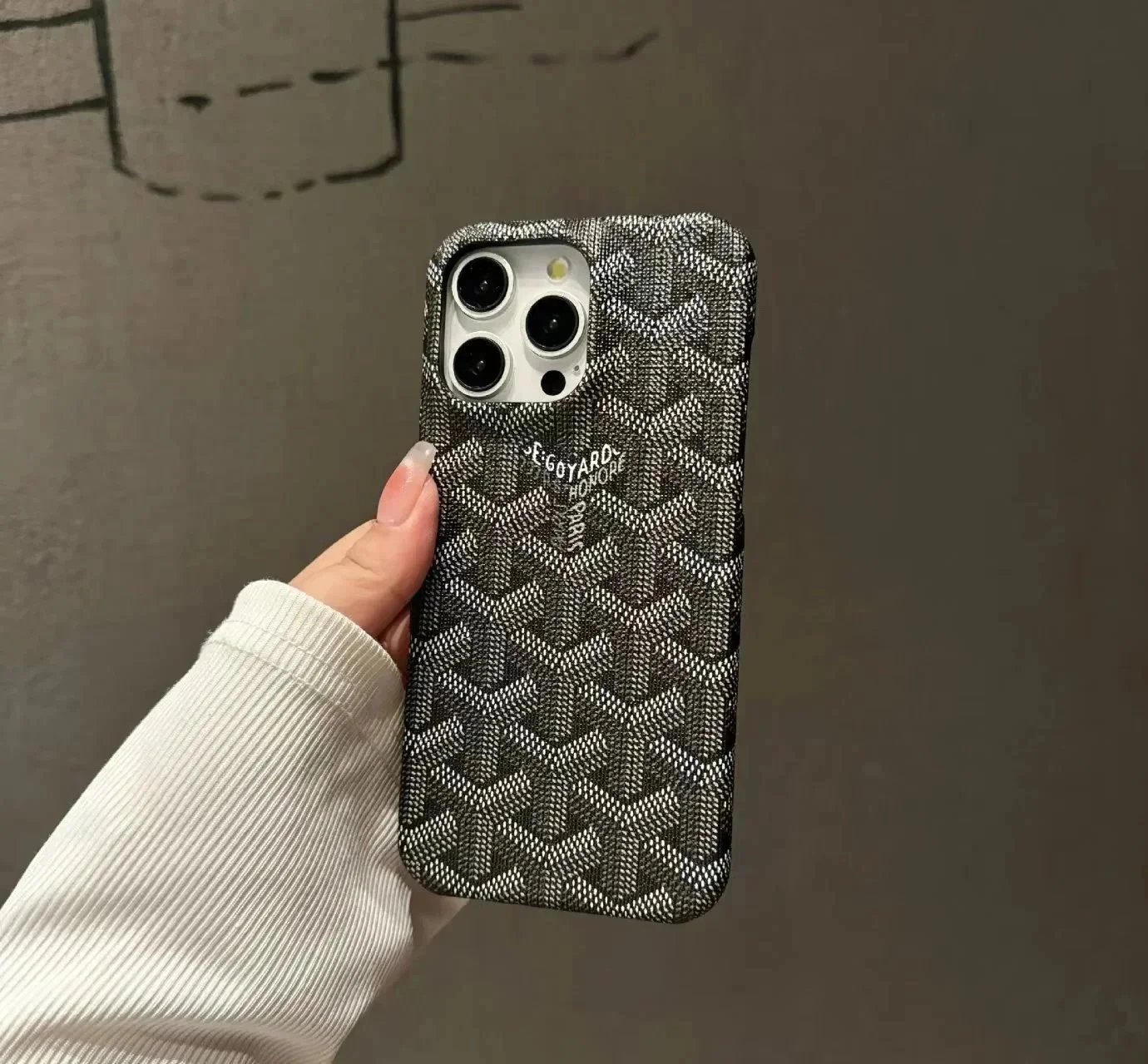 Elevate your device with authentic Goyard monogram iPhone cases featuring signature woven patterns and premium craftsmanship in a variety of elegant colors.