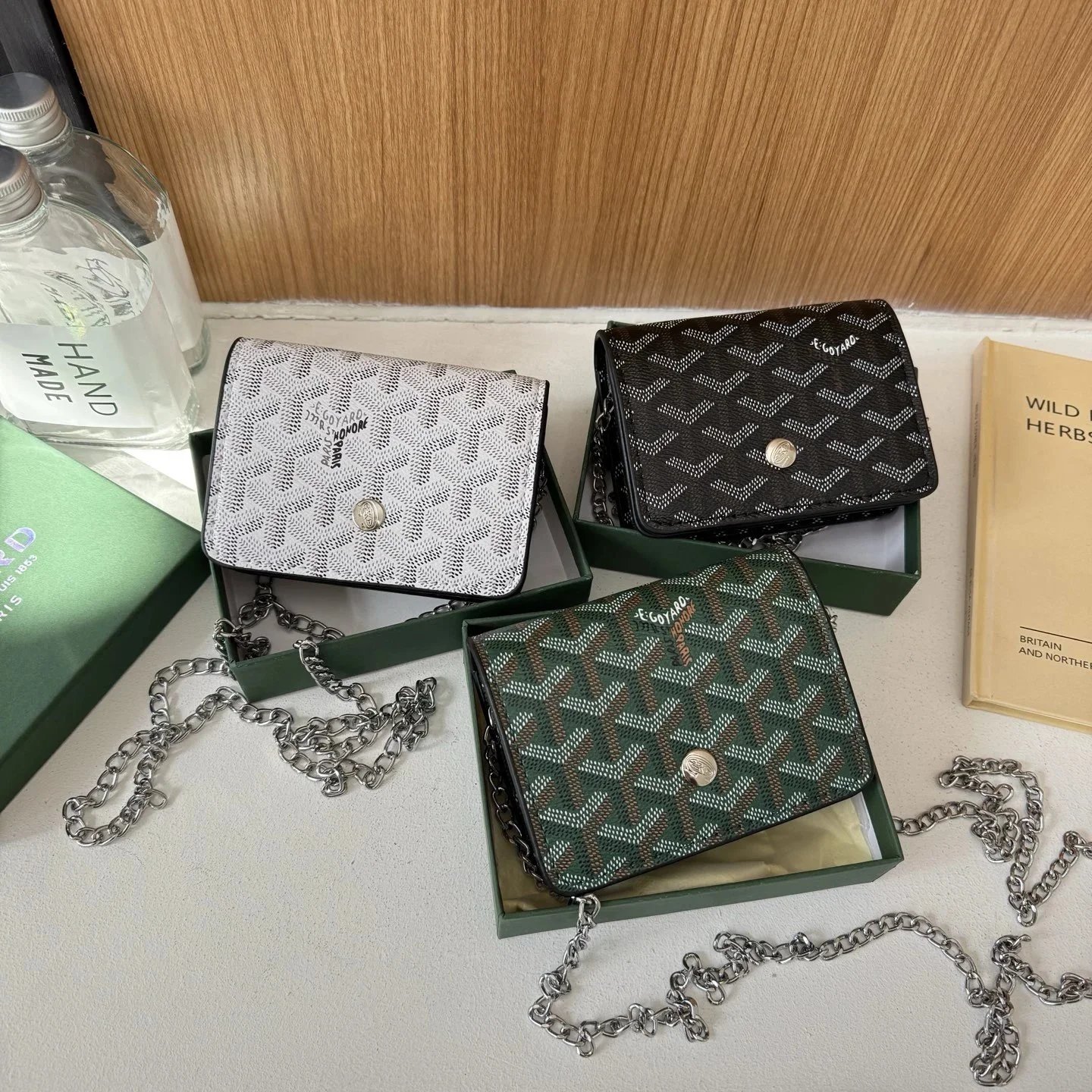 Discover the iconic Goyard collection featuring monogrammed travel duffels, tote bags, and matching accessories in premium leather with timeless elegance and craftsmanship.