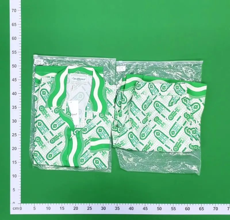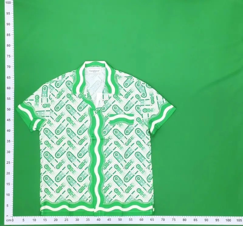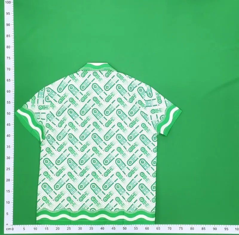 This men’s two-piece set features a short-sleeve shirt and matching shorts with a bold green wave and abstract pattern. Ideal for casual or loungewear, it combines comfort with a distinctive visual style.