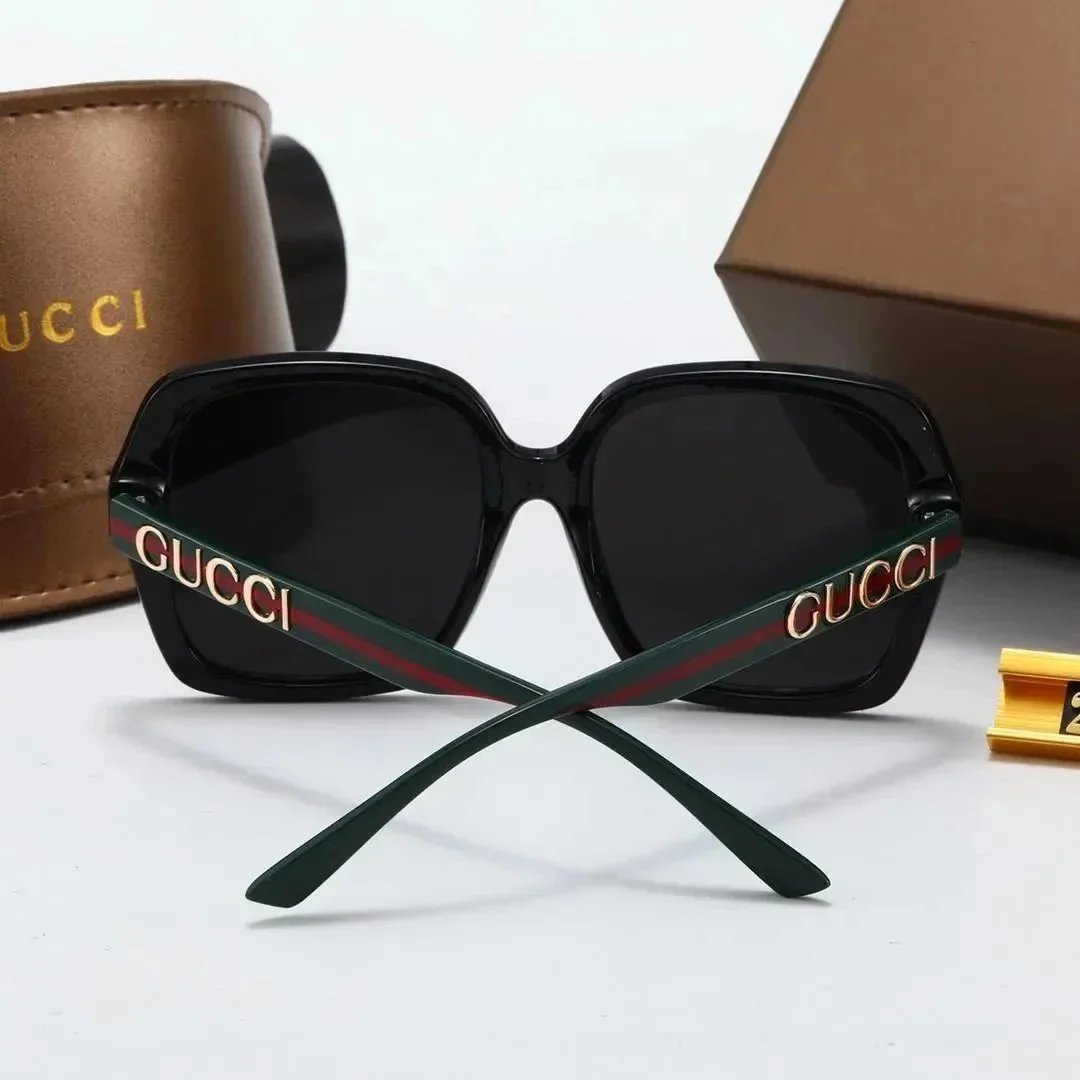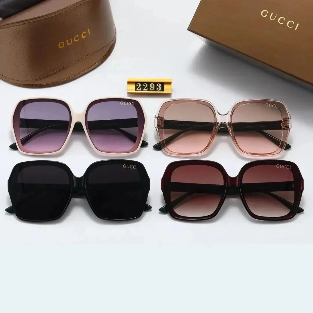 Elegant Gucci 2293 square sunglasses featuring bold frames and gradient lenses. Available in black, pink, and brown with iconic gold GUCCI branding.