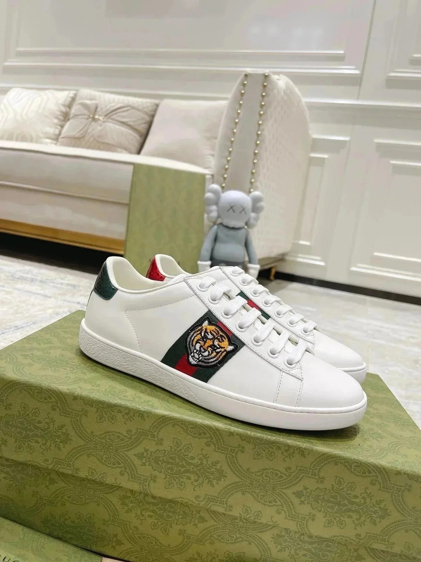 Luxury Gucci Ace sneakers featuring iconic bee embroidery and web stripe detailing. Crafted for style and comfort.