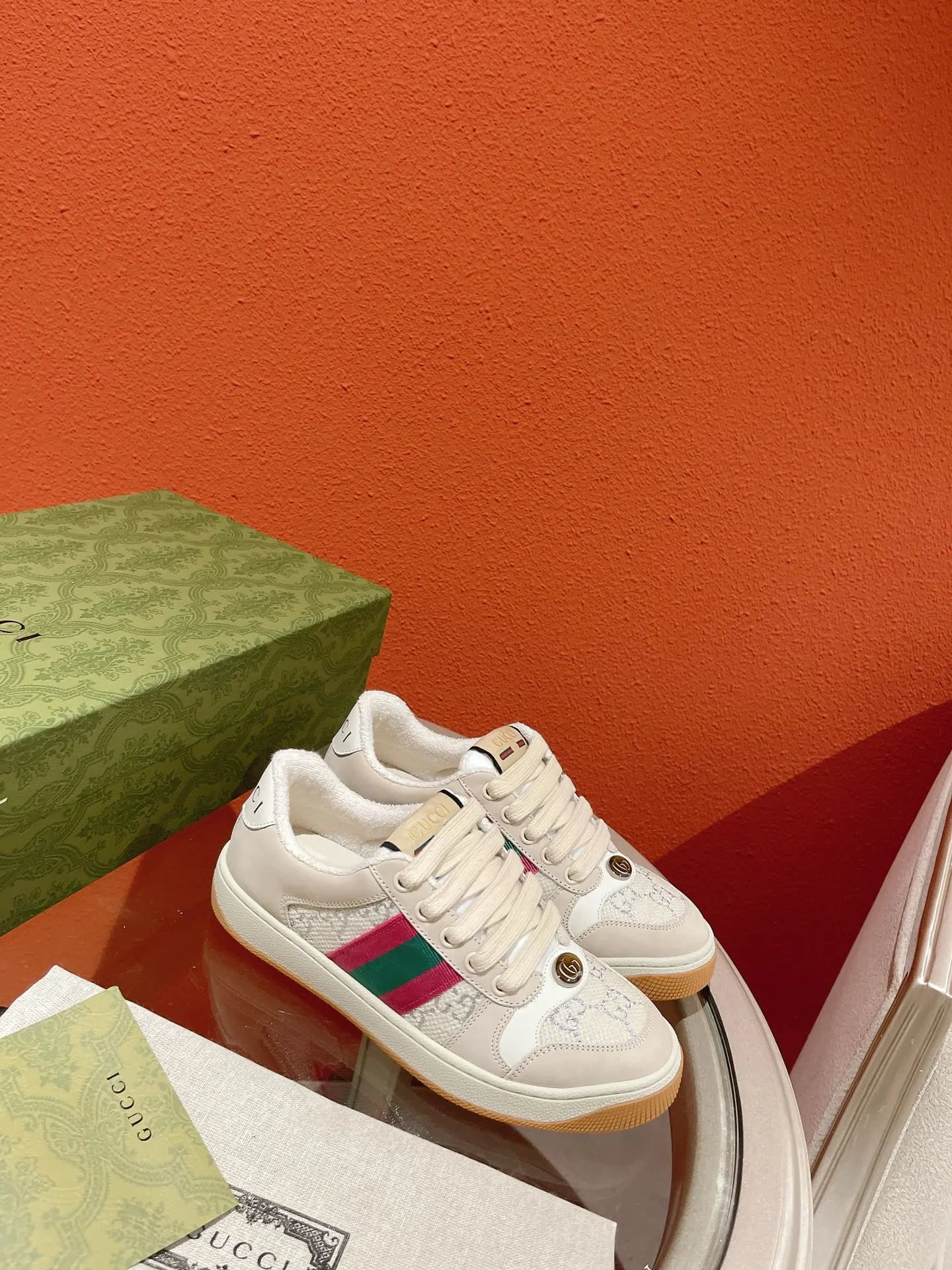 Luxury Gucci Ace sneakers featuring iconic Web stripe and GG Supreme canvas. Perfect for casual elegance with timeless Italian craftsmanship.