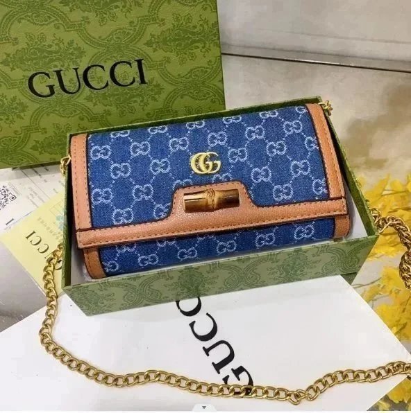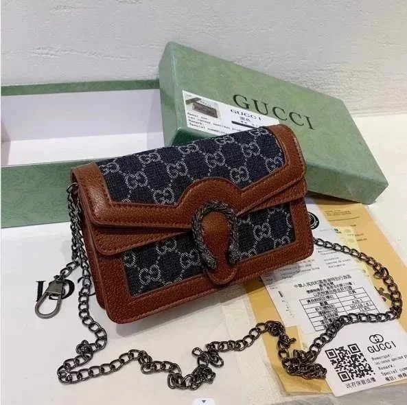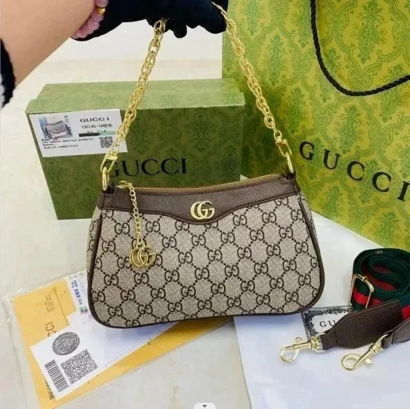 Gucci GG Supreme Small Shoulder Bag with Gold Chain