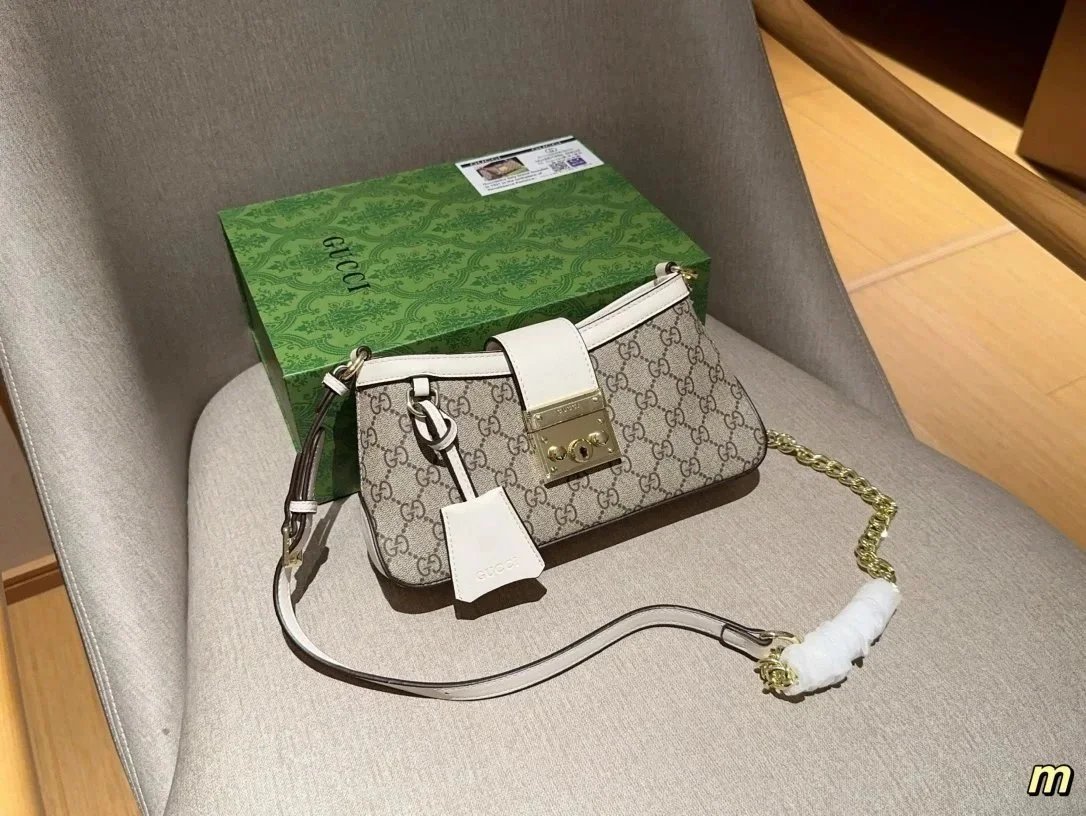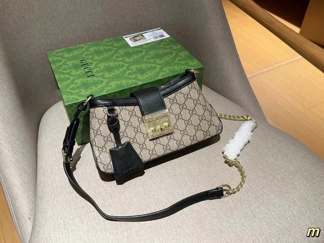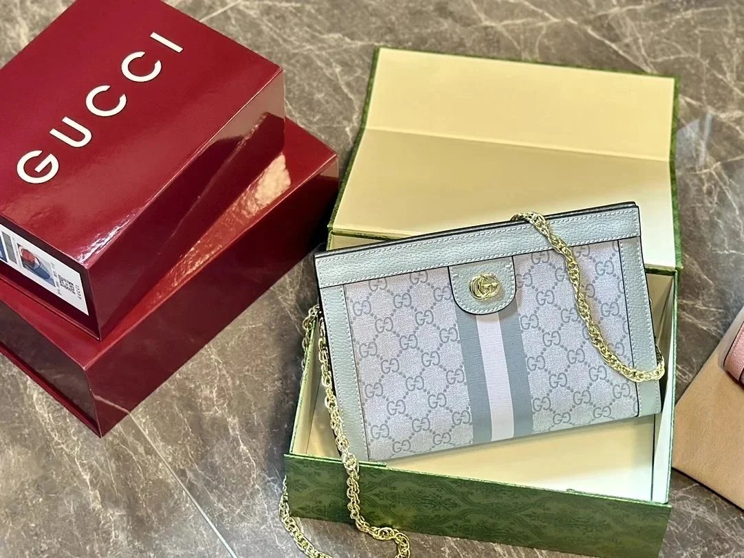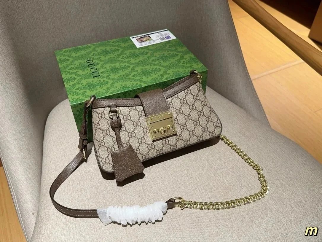 Gucci GG Supreme Small Shoulder Bag with Gold Chain