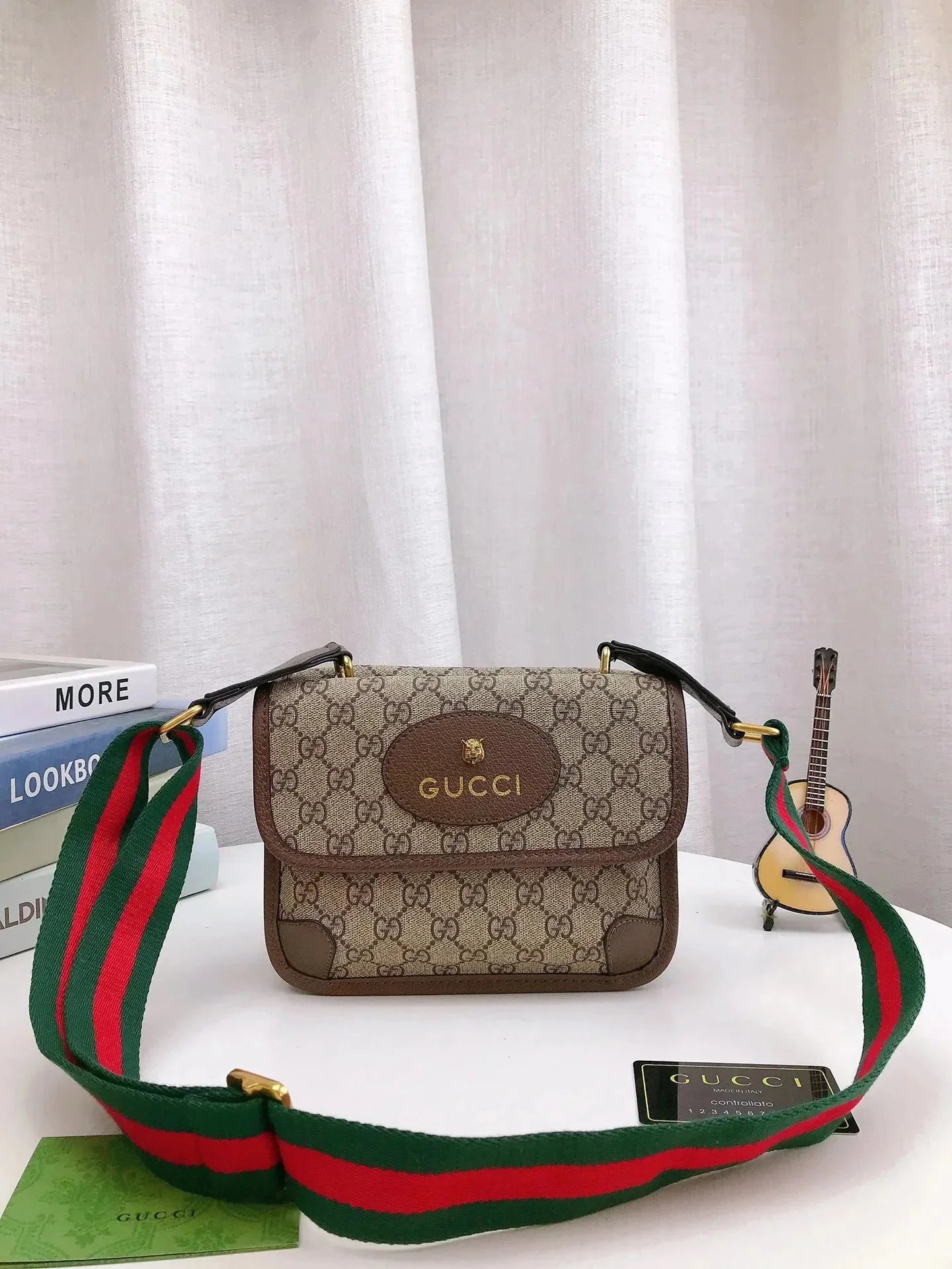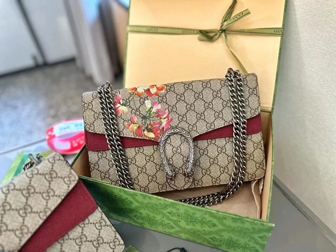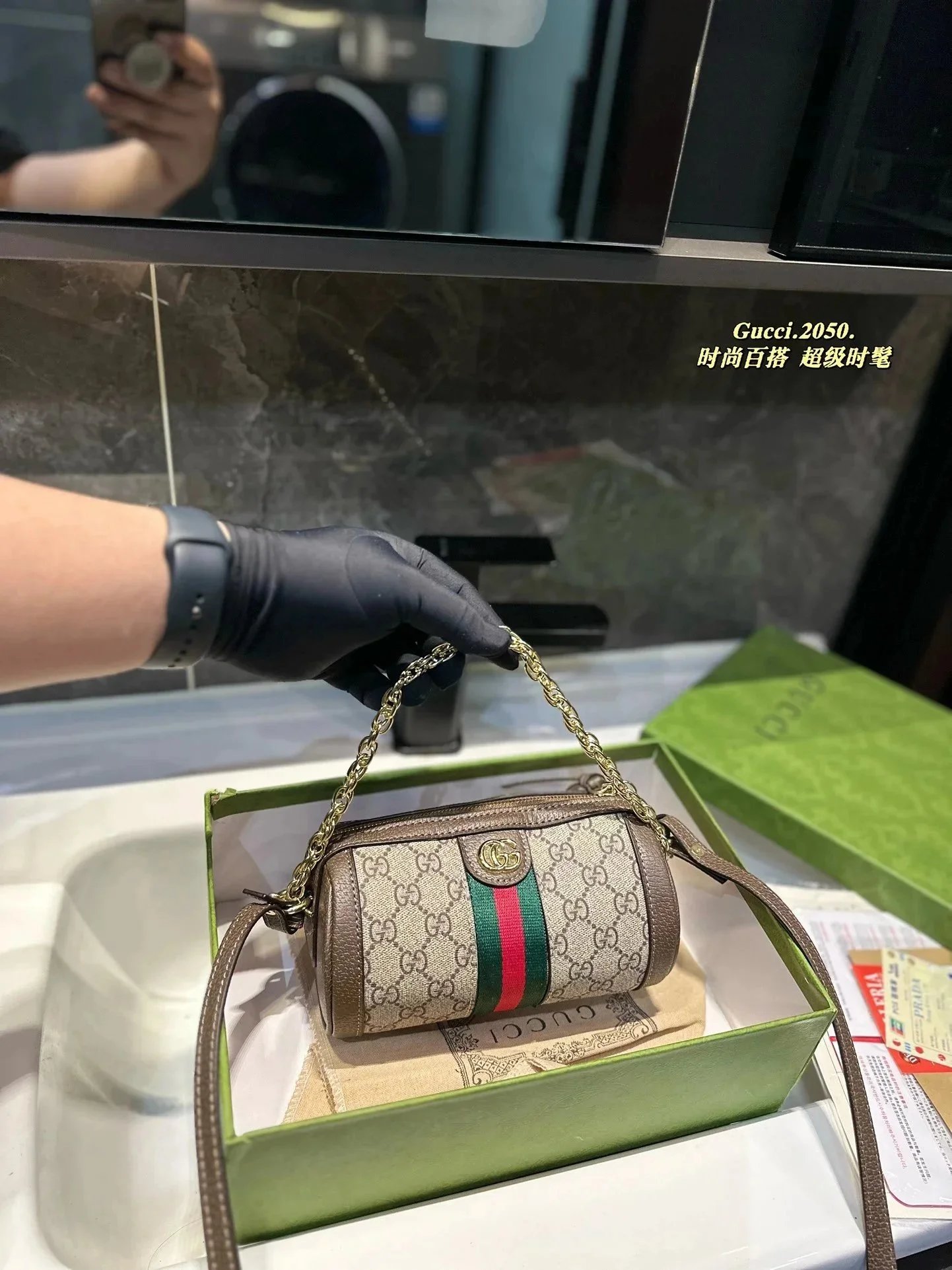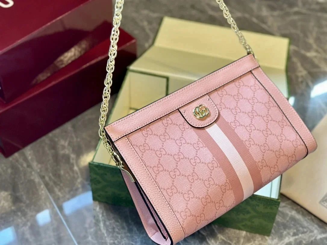 Gucci GG Supreme Small Shoulder Bag with Gold Chain