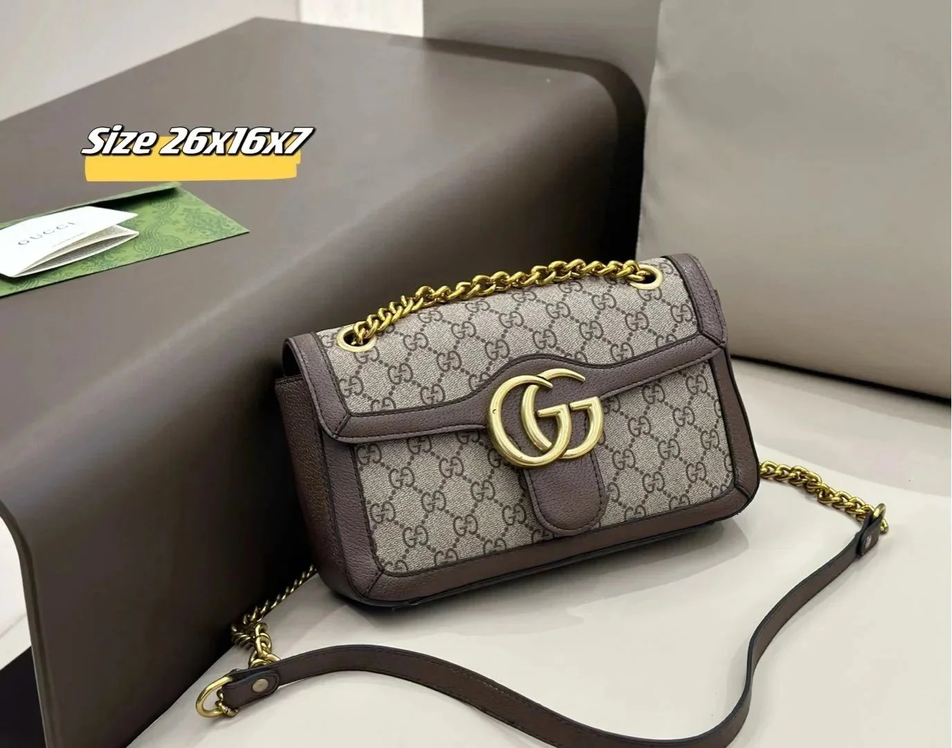 Gucci GG Supreme Small Shoulder Bag with Gold Chain