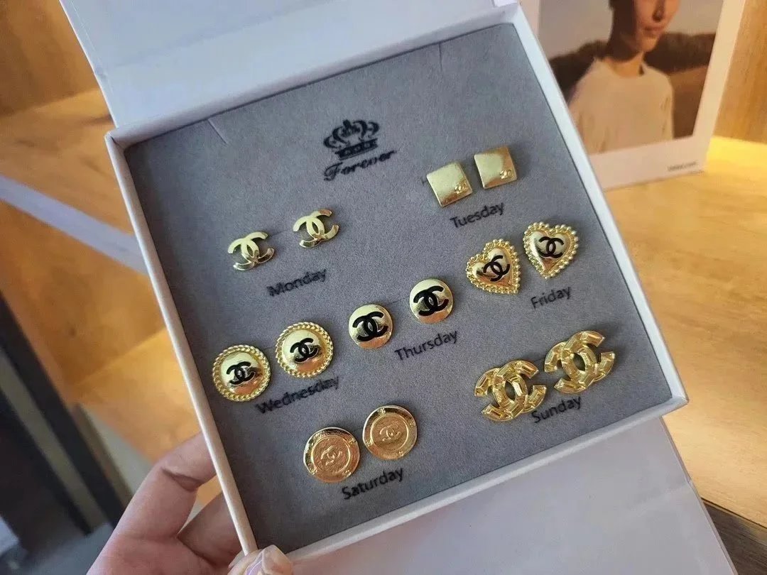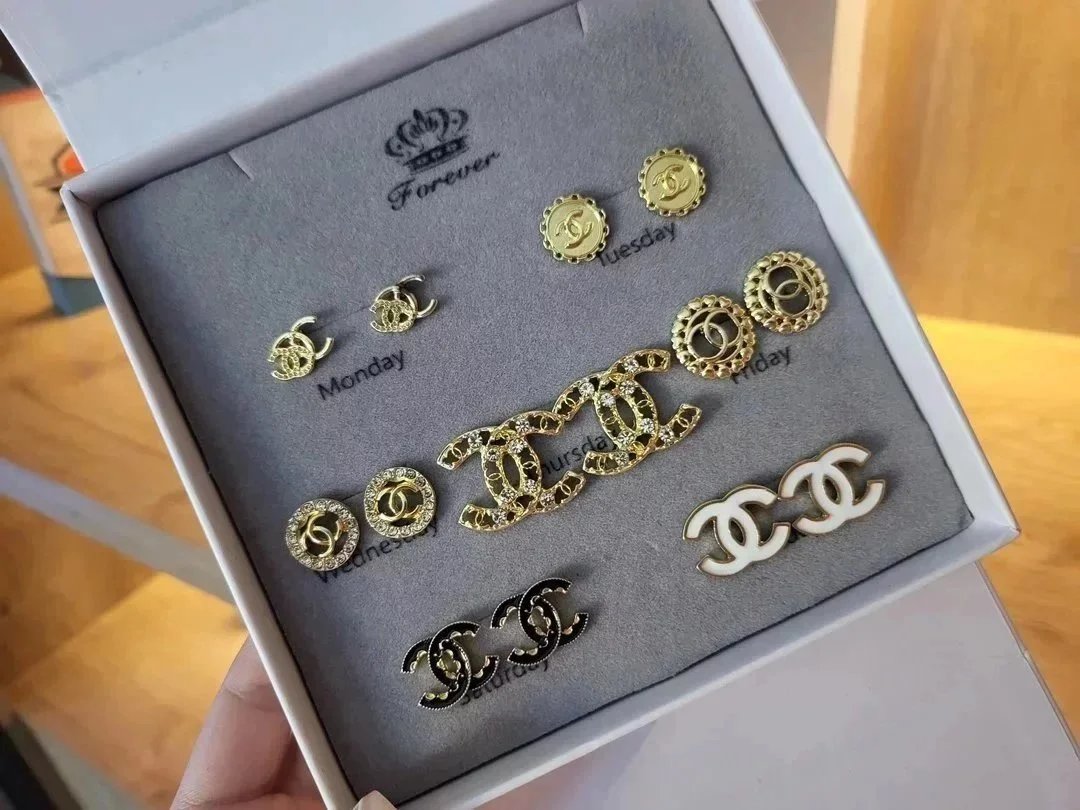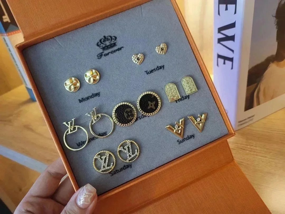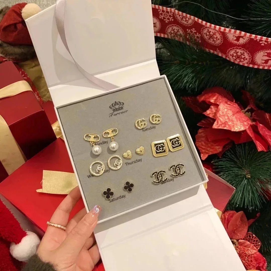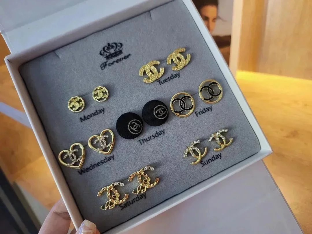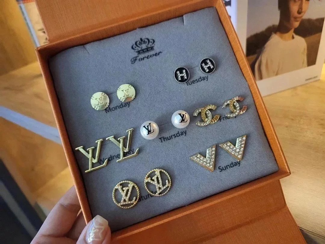 Elevate your style with this exquisite Gucci earrings set featuring gold-tone studs, sparkling crystals, pearls, and iconic double-G logos. Perfect for adding a touch of luxury to any outfit.