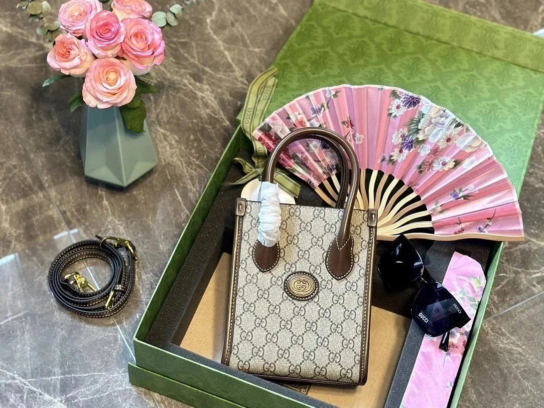 Gucci GG Supreme Small Shoulder Bag with Gold Chain