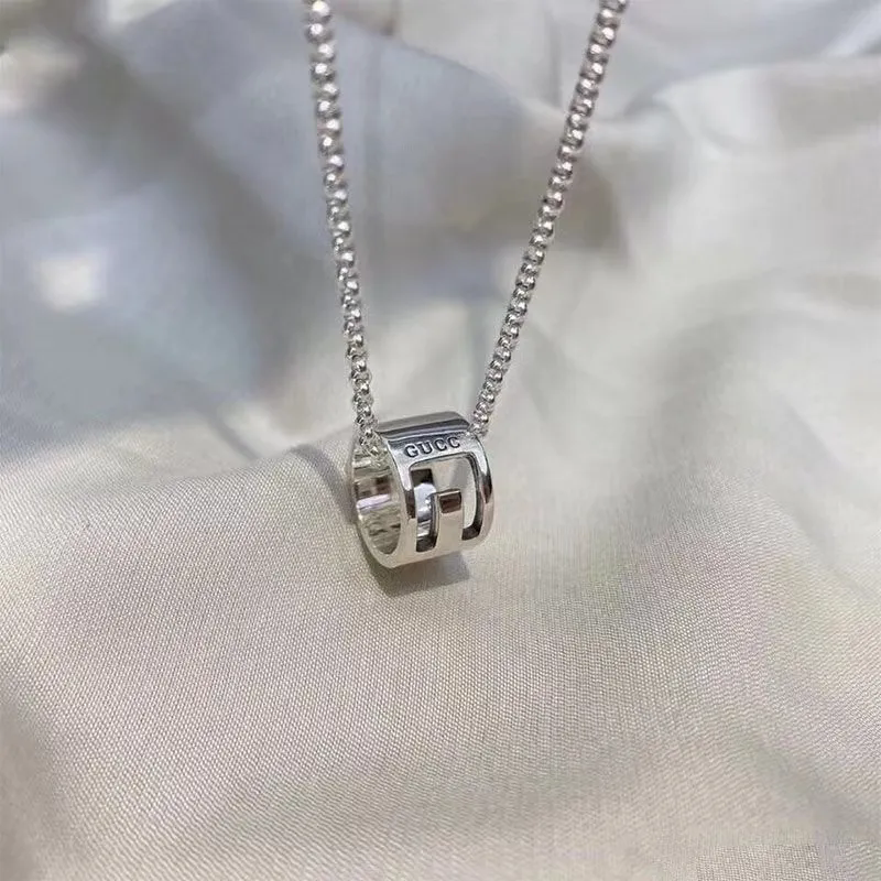 Elegant Gucci silver open-ring necklace featuring the iconic interlocking G logo and a delicate chain. Perfect for adding luxury to any outfit.