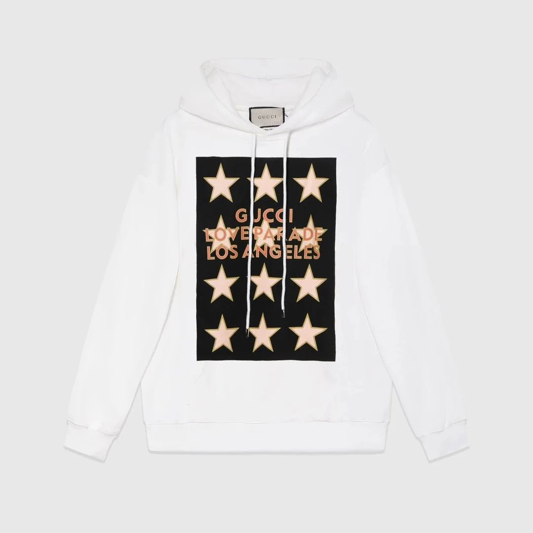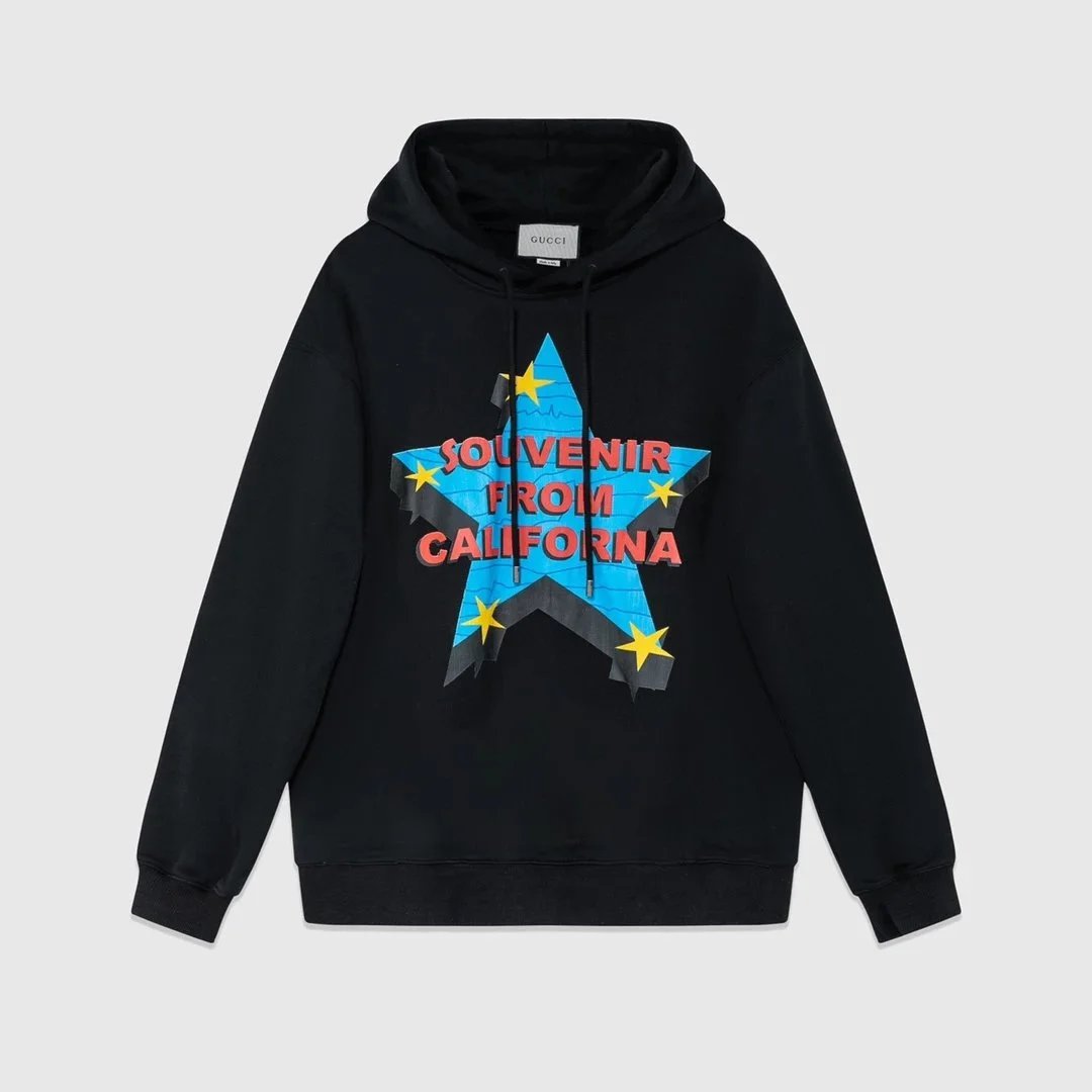 Luxury cream Gucci hoodie featuring a bold 'Souvenir from California' star graphic. Perfect for statement casual wear with iconic designer flair.
