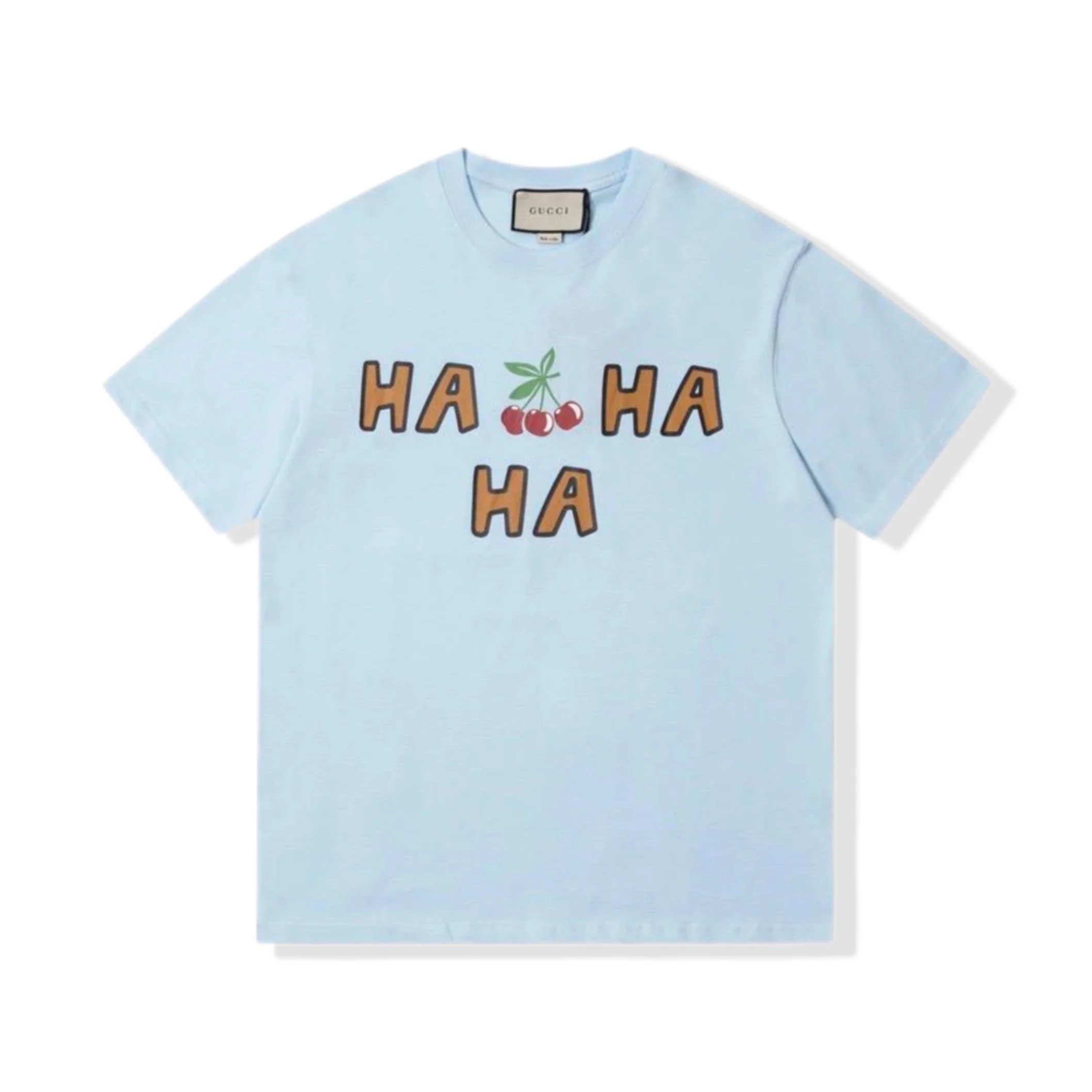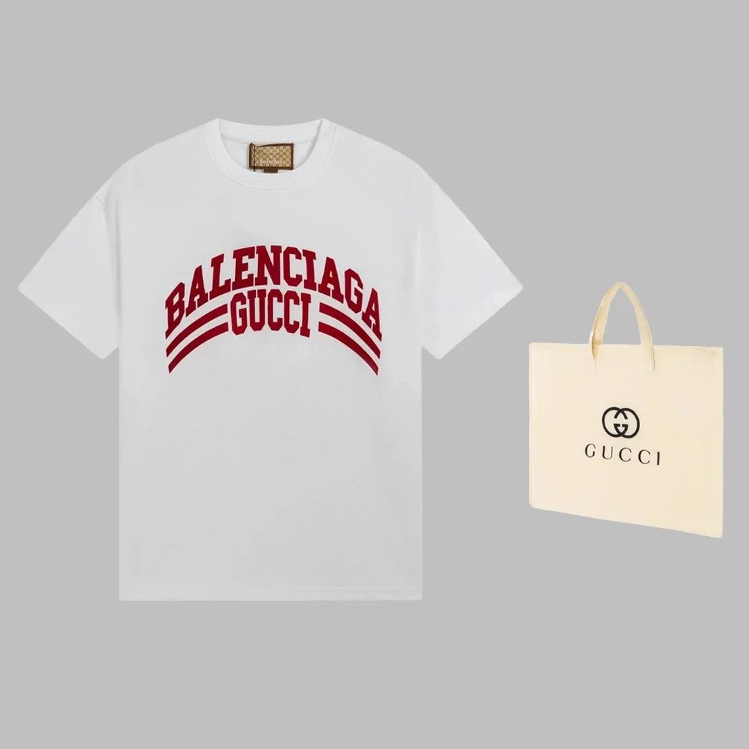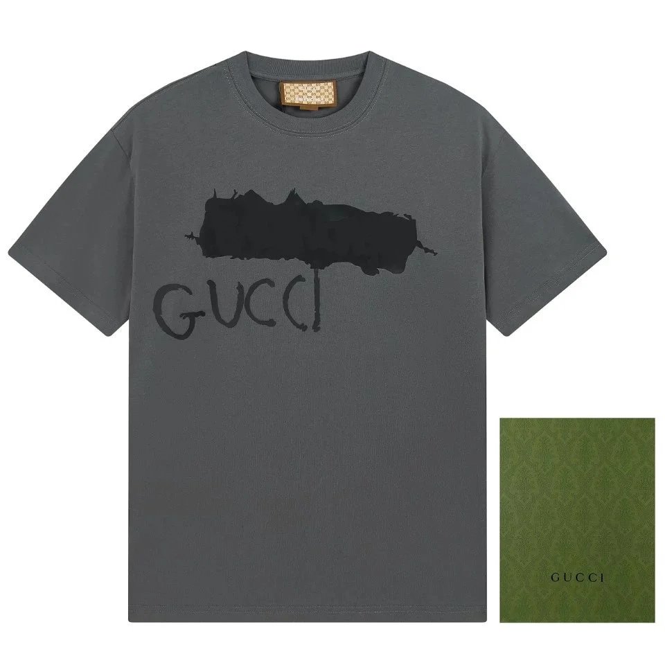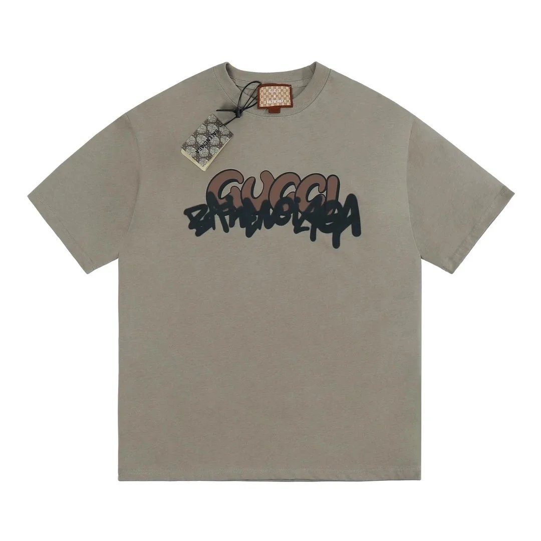 This Gucci t-shirt features a bold graphic of three corduroy bunnies in green, purple, and magenta over the iconic interlocking G logo. Made from soft cotton, it’s a statement piece blending luxury branding with playful design.