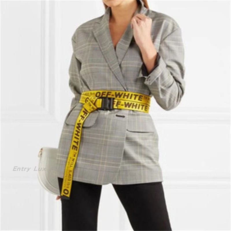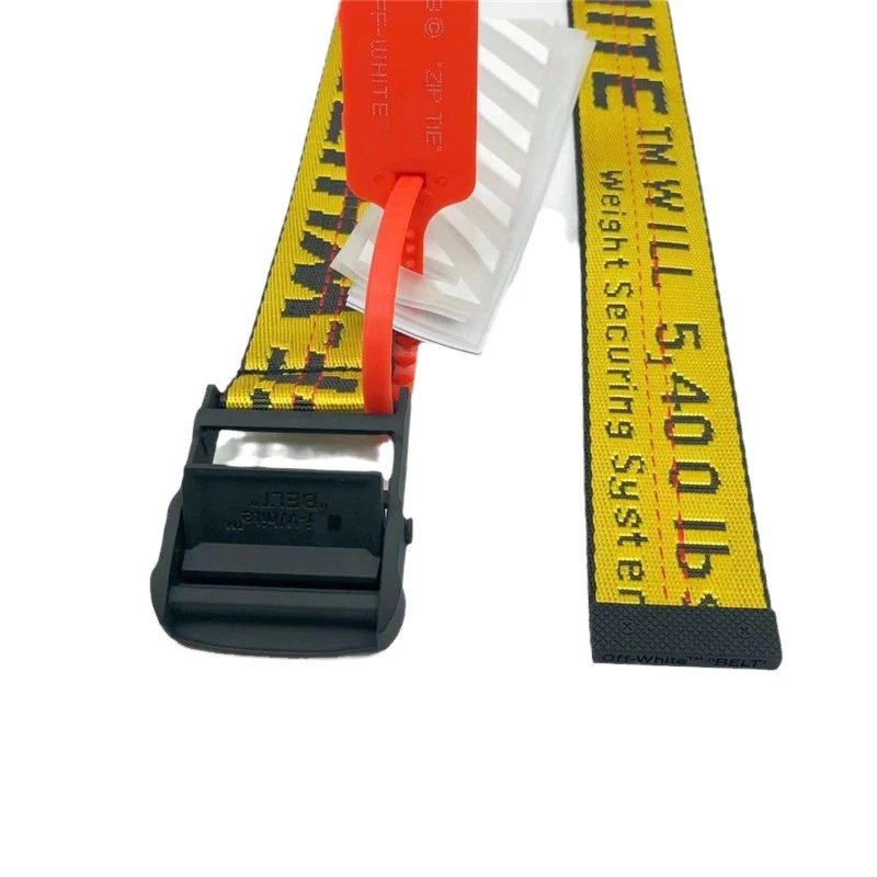 Stylish H&M logo web belts in gray, yellow, and black with durable plastic buckles. Perfect for adding a bold statement to any casual outfit.